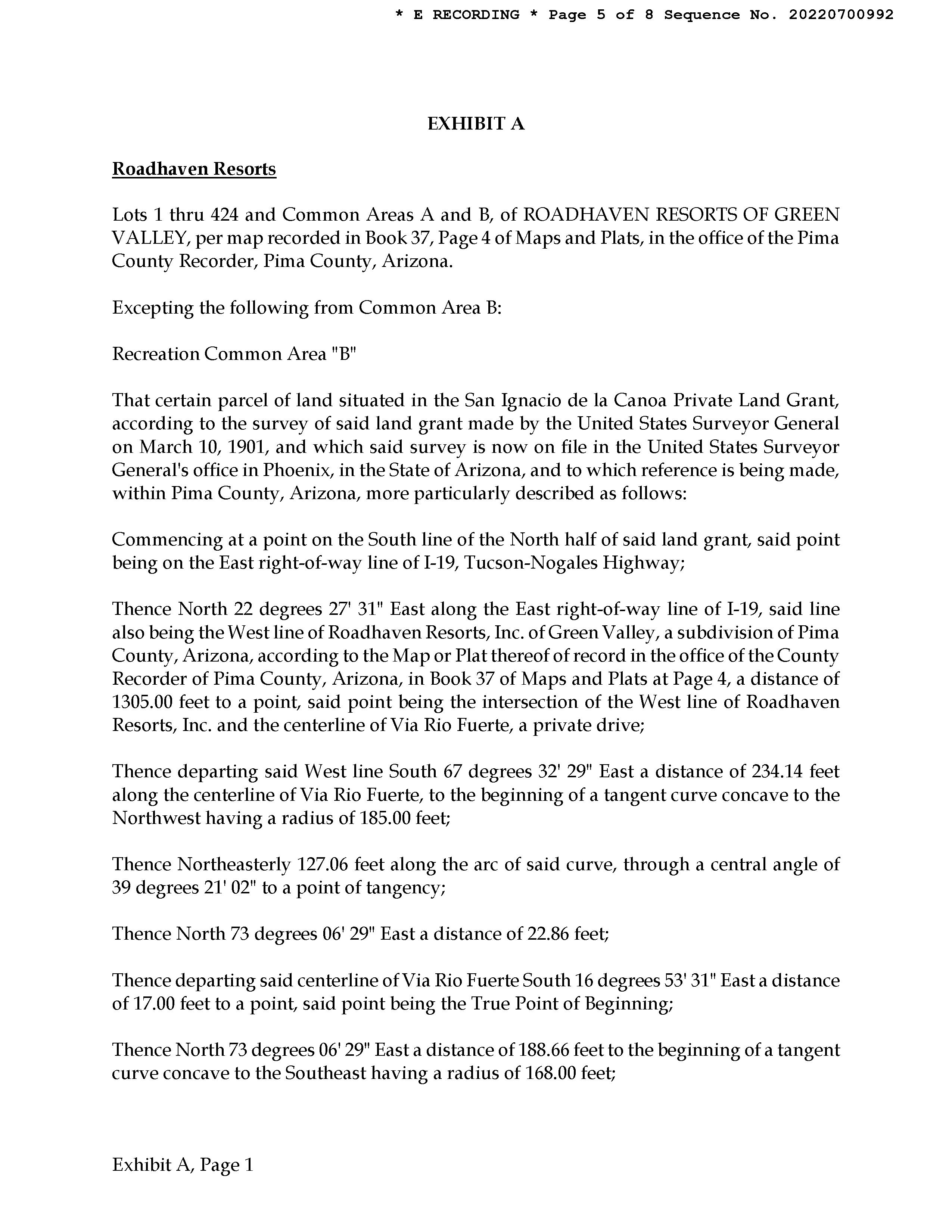 LEGAL: ROADHAVEN RESORTS INC OF GREEN VALLEY LOT 168