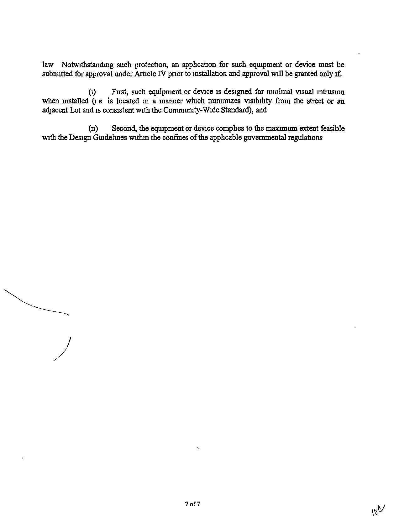 (1) Frrst, such equipment or device IS designed for mmimal VIsual intrusion when installed (J e is located ill a manner wluch rmnumzes visibility from the street oran adjacentLotand IS consistent WIth the Community-Wide Standard),and