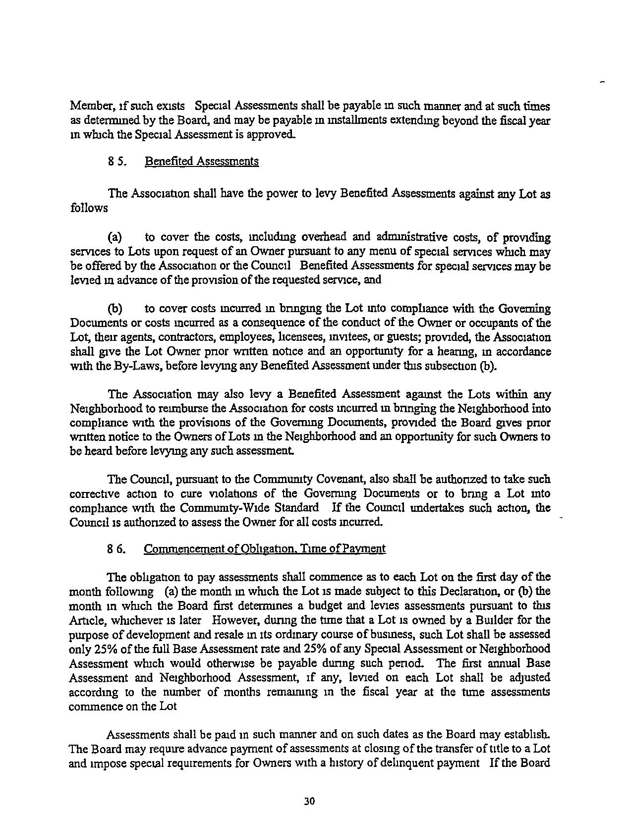 "Base Assessment". Assessments levied on all Lots subject to assessment under ArticleVIIItofundCommonExpensesforthegeneralbenefit of all Lots