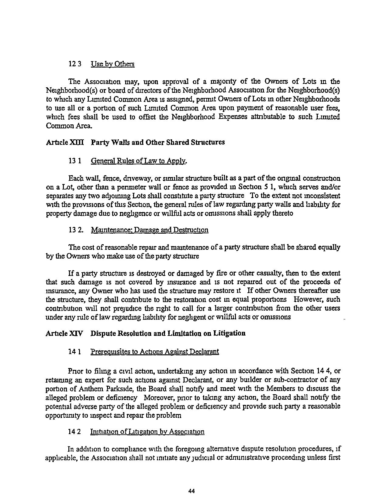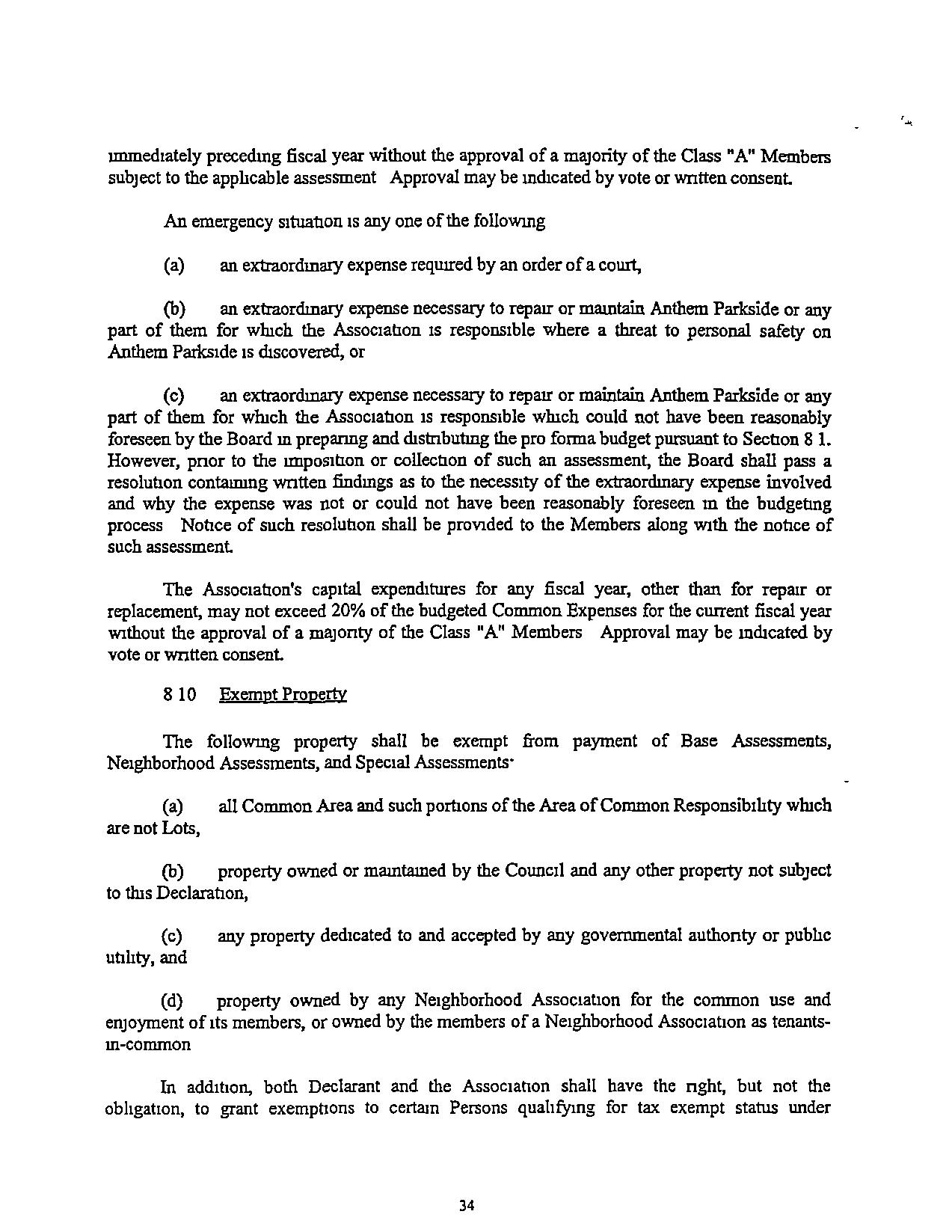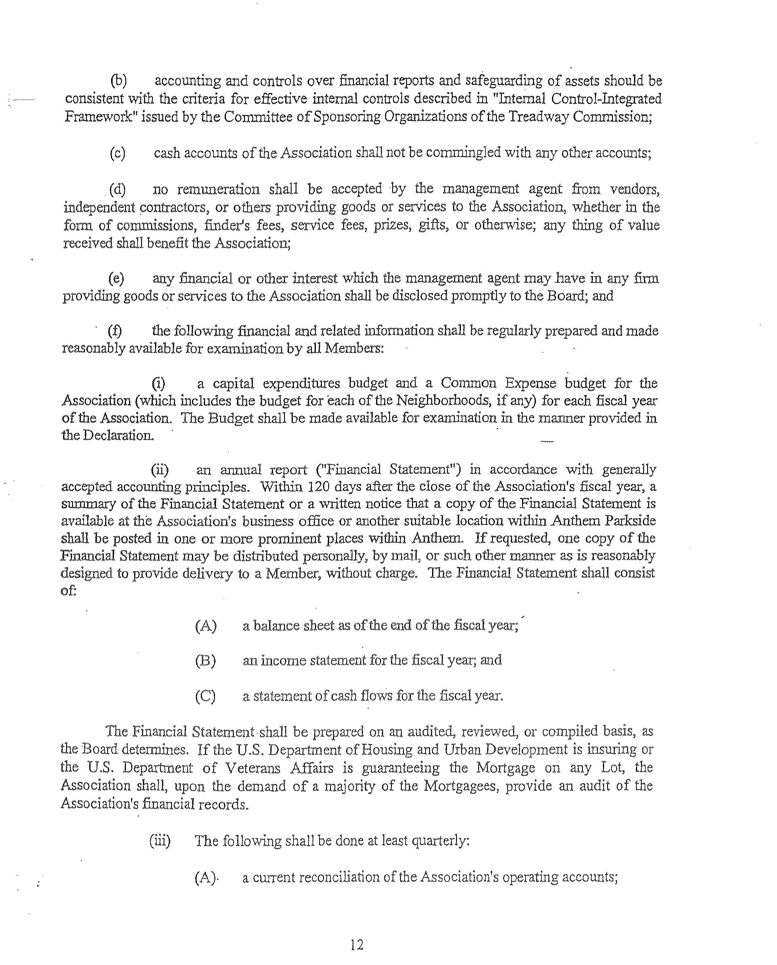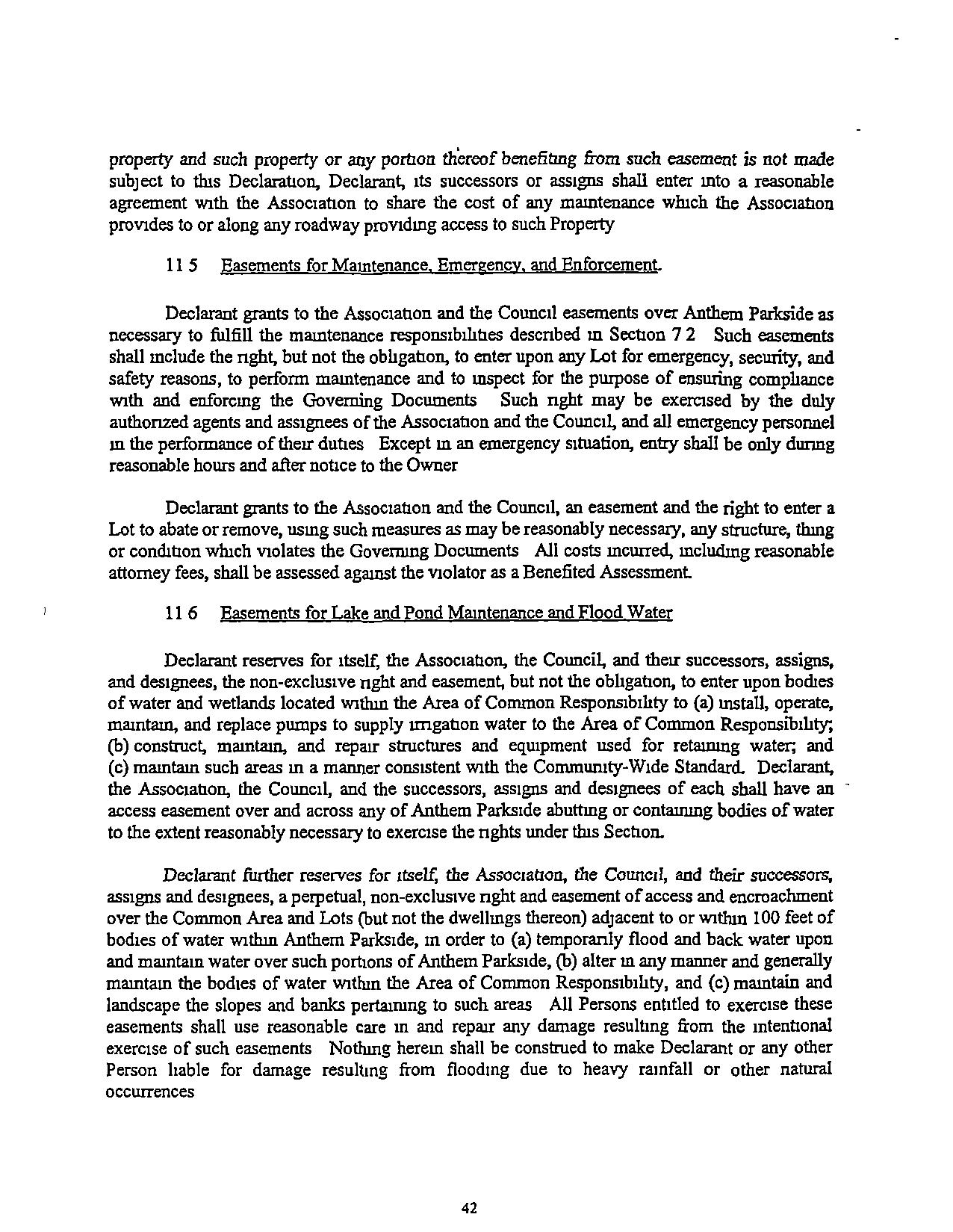 "Comrntunty-Wlde Standard" The standard of conduct. maintenance, or other activity generallyprevailingthroughoutAnthemParksideSuchstandardshallbeestablished nullally by DeclarantandmaybemorespecificallydefinedmtheGovermngDocuments.Subsequent amendmentstosuchstandardshallmeetorexceedthestandardssetbyDeclarantandtheBoard dunng theClass"B"Control Penod andtheprevarlmgstandardapphcabletoall of Anthem.The Cornmuruty-Wide Standardmaycontainbothcbjectrveandsubjectiveelementsandmayevolve asdevelopmentprogressesandastheneedsand demands of AnthemParksrdechange