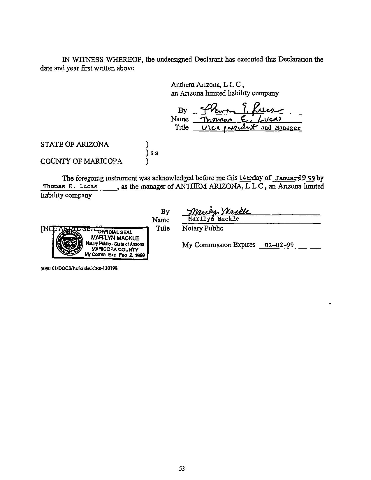 "Assocranon" Anthem Parkside Commumty Association, Inc,an Arizona nonprofit corporation, its successors or assigns