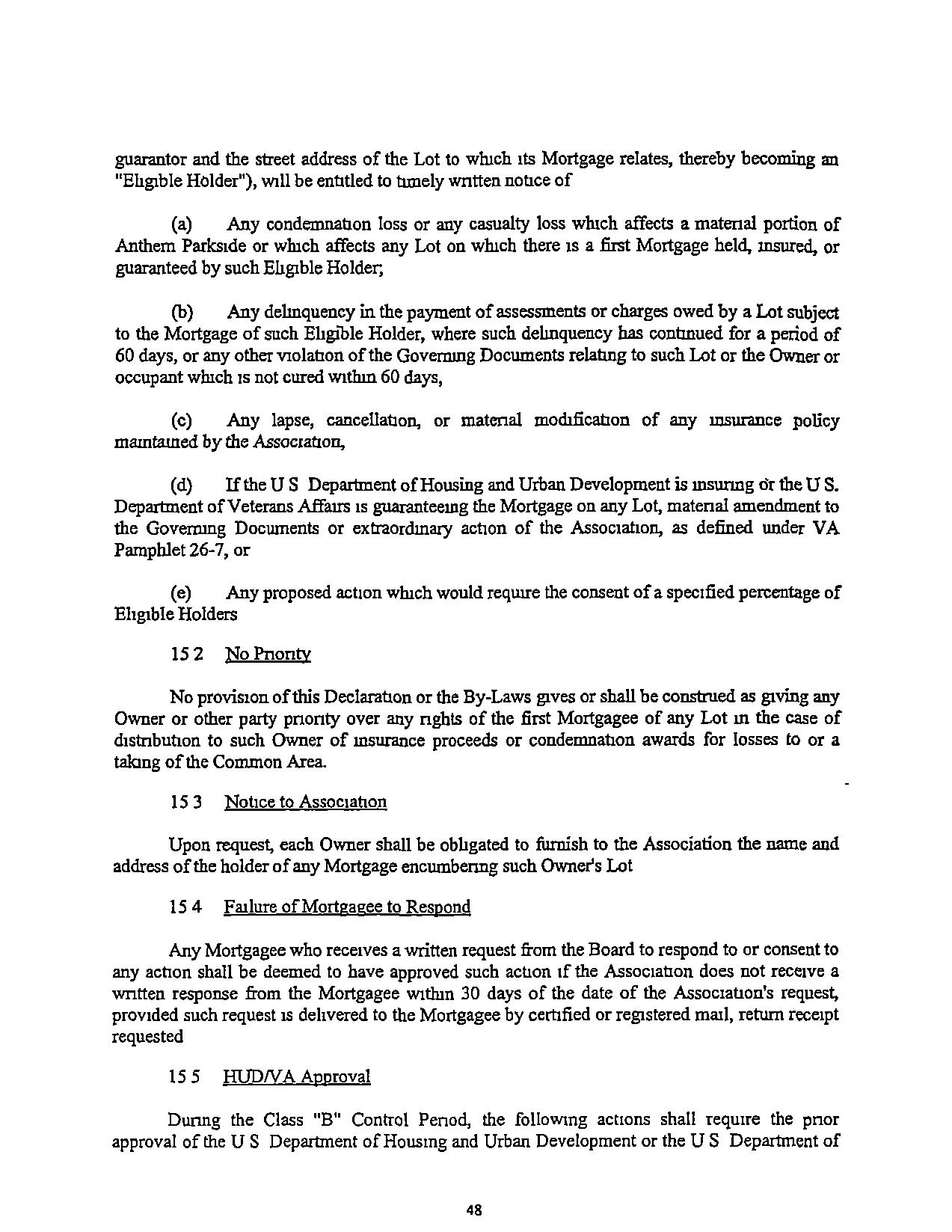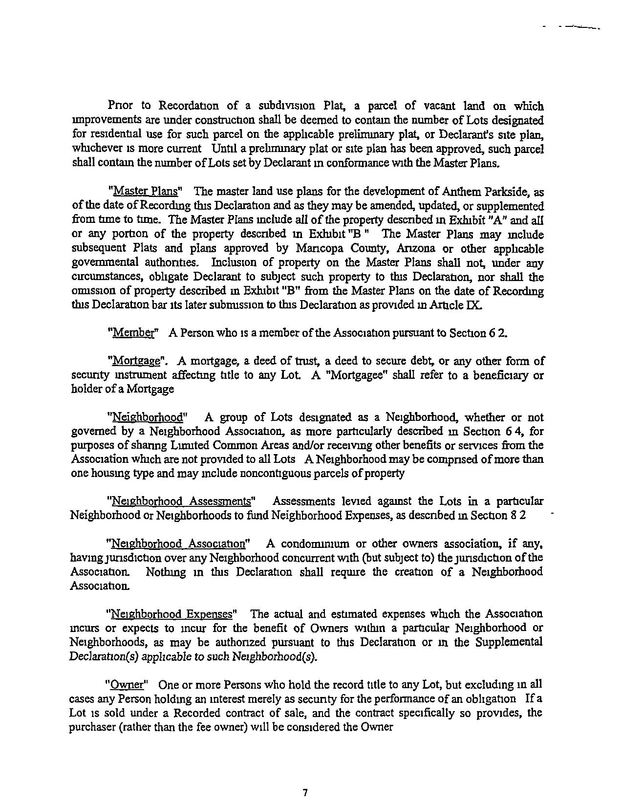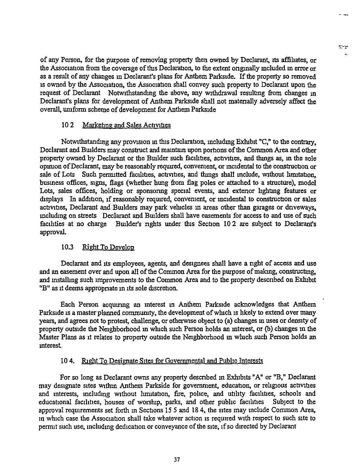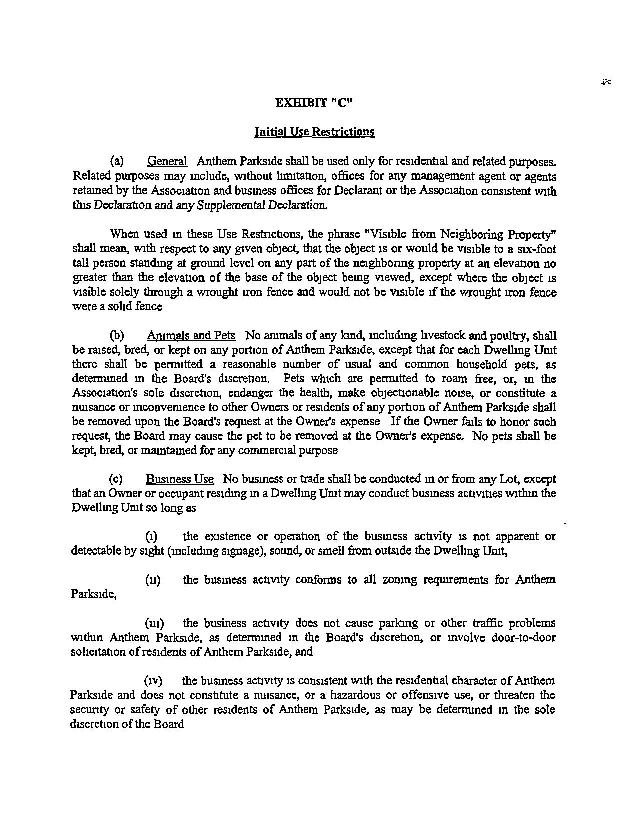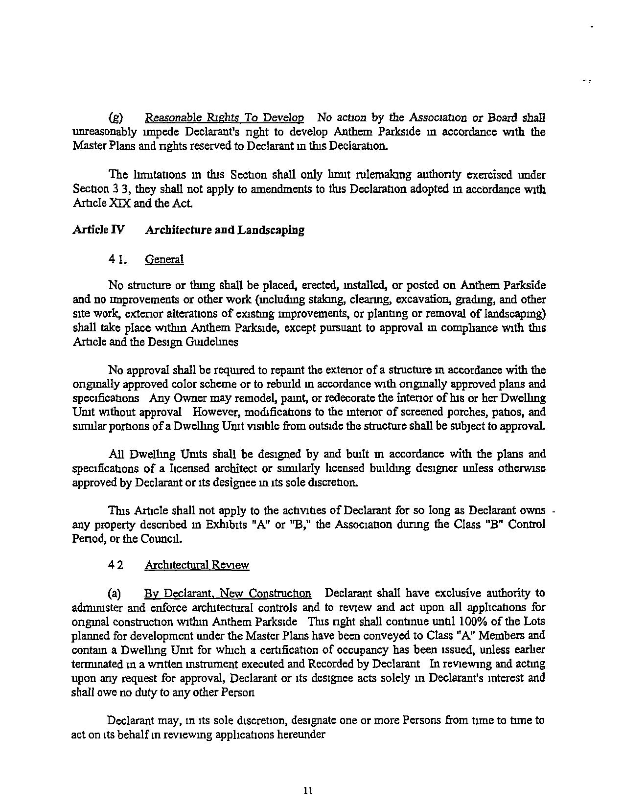 addsproperty to Anthem. Parkside, may impose addrtronal obligations or restncnons on such property