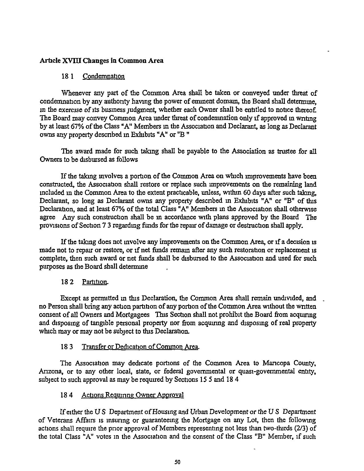 The Association may dedicate portions of the Common Area to Mancopa County, Arizona, orto any other local, state, or federal governmental or quasr-govemmental entity, subjecttosuchapprovalasmayberequiredby Sections 155and184