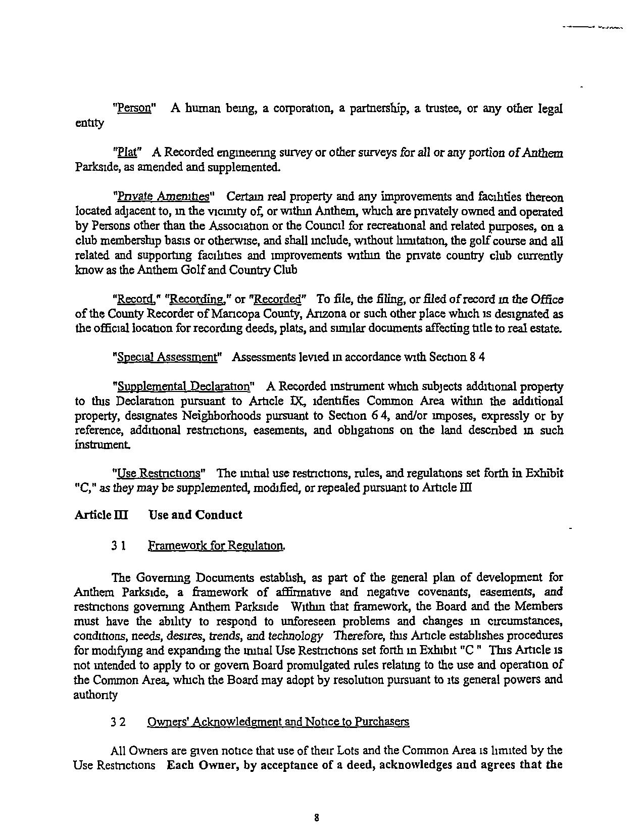 "Anthem" That certain mixed-use master planned. community located In Mancopa County,Anzona,winch 15 subjecttotheCommumty Covenant andwinch includes Anthem Parksrde