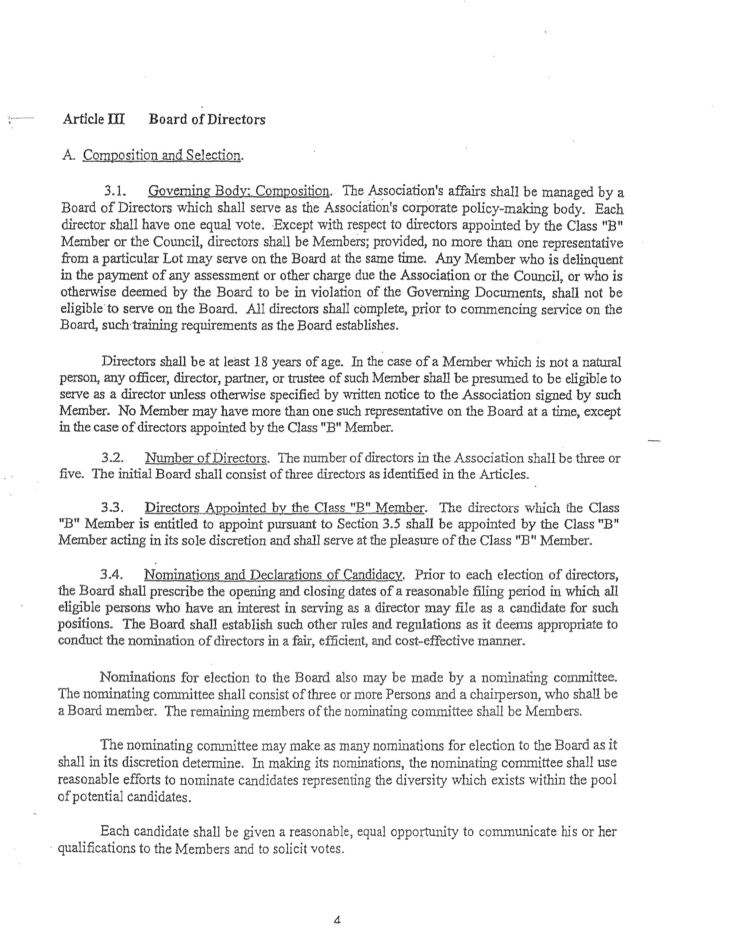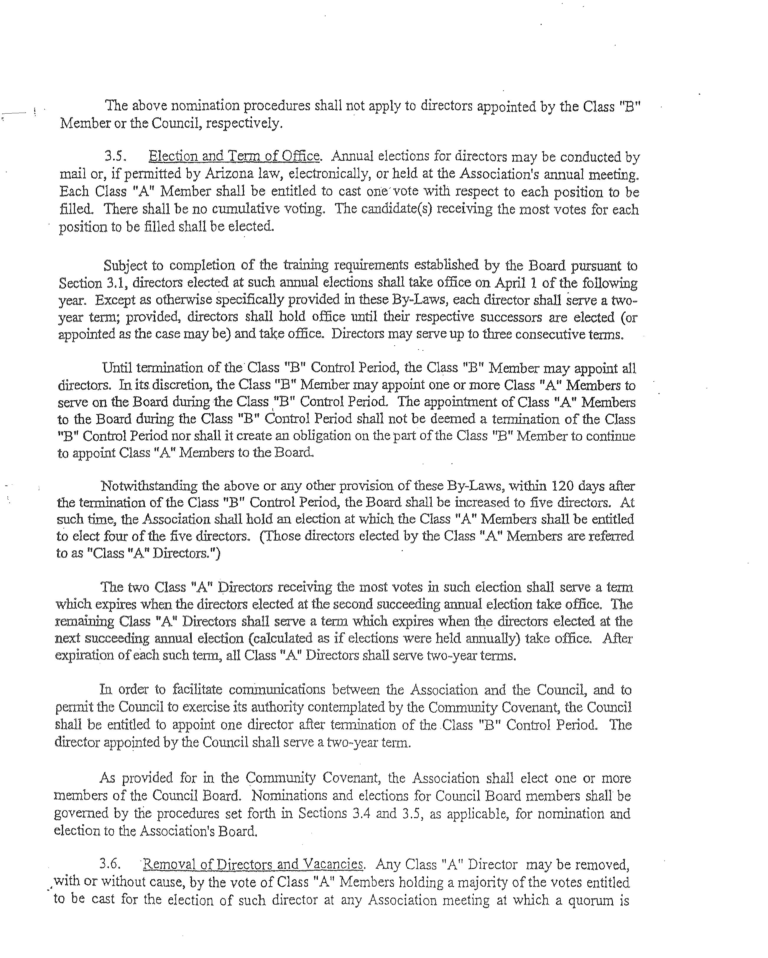 "Board of DIrectors" or "Board" The body responsible for adnunistration of the Assocration, selected as provided in the By-Laws and serving the same role as the board of dtrectors under Arizona corporate law.