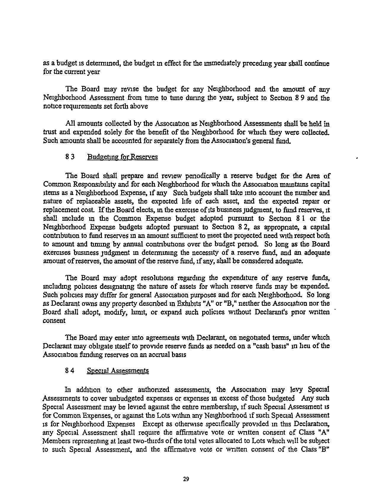Exceptasctherwtsespecificallyprovidedaboveandelsewhere m tIus Declaration, t1us Declaration maybe amended onlybythe affirmative voteorwntten consent, orany combination thereof, ofMernbersrepresenting 67% of the Class "A" votesmthe AsSOCIatIon, and the consent of Declarant,solongDeclarantownsanypropertysubjectto t1us Declarationorwluchmay become subject to thisDeclaration In accordance With Section 91