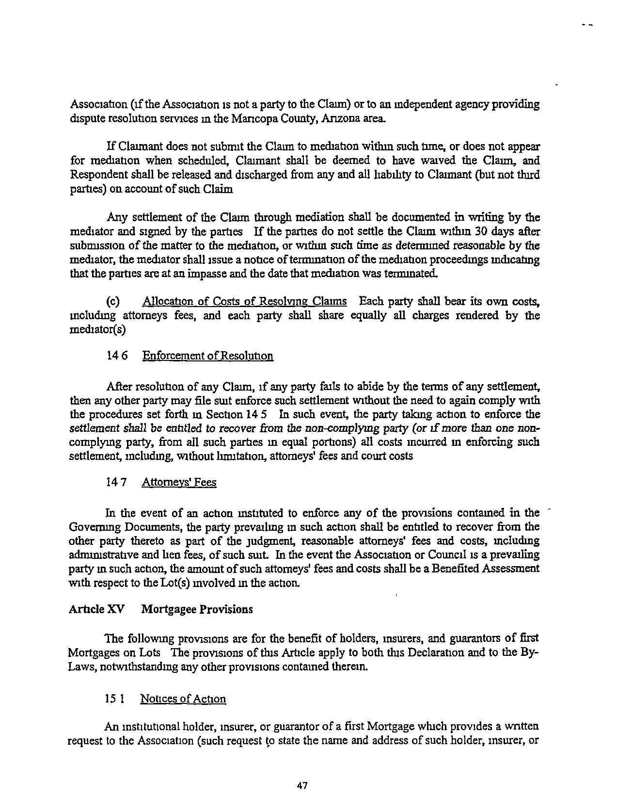 TlusDeclarationshallbeenforceablebyDeclarant,theAssocration,theCouncil,any Owner, andtheir respective legal representatives, heirs, successors, and assigns, by any means available at law or in equity, subject totheprovisions of Article XV, rf applicable,