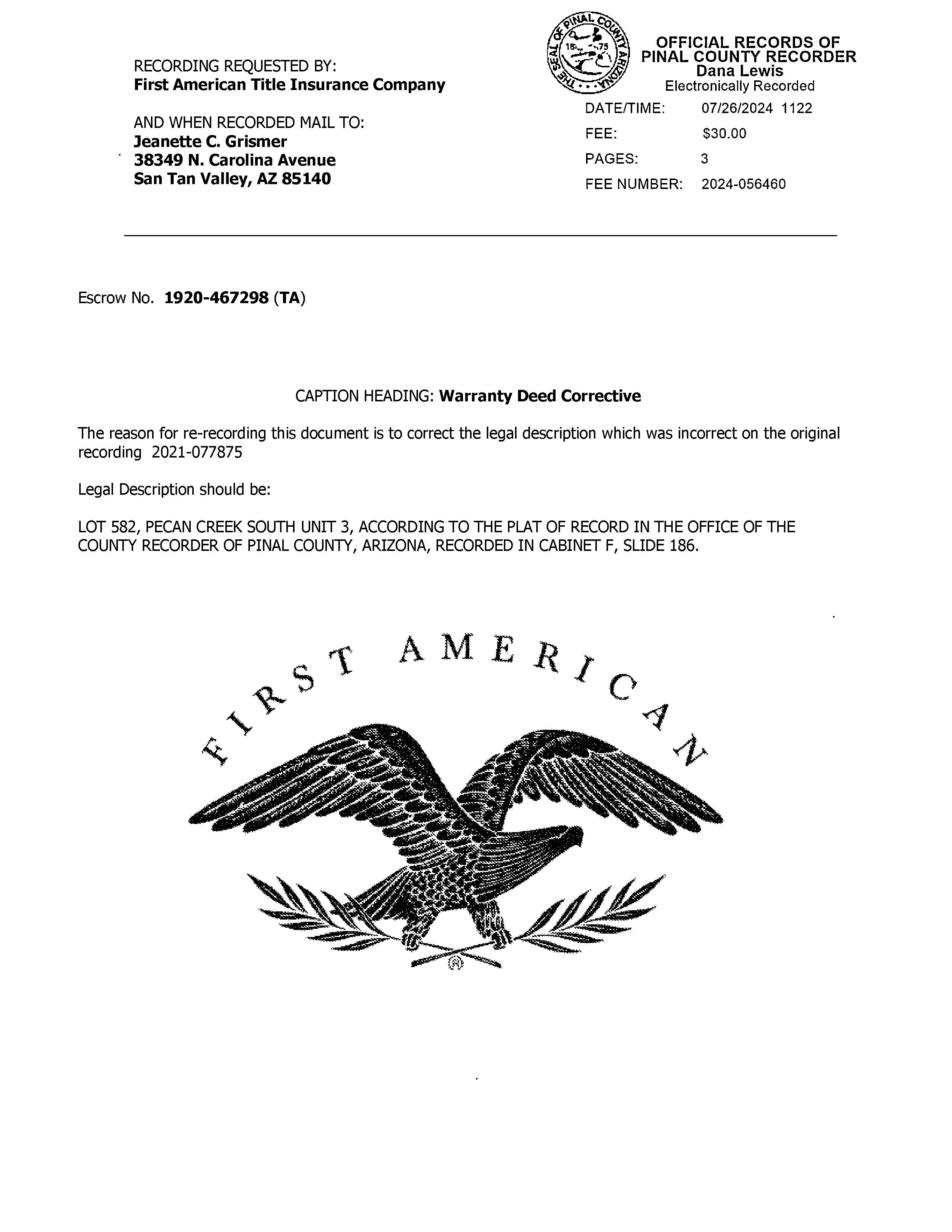 Mailing Address : 38349 N Carolina Ave, San Tan Valley AZ 85140-5822 H075
