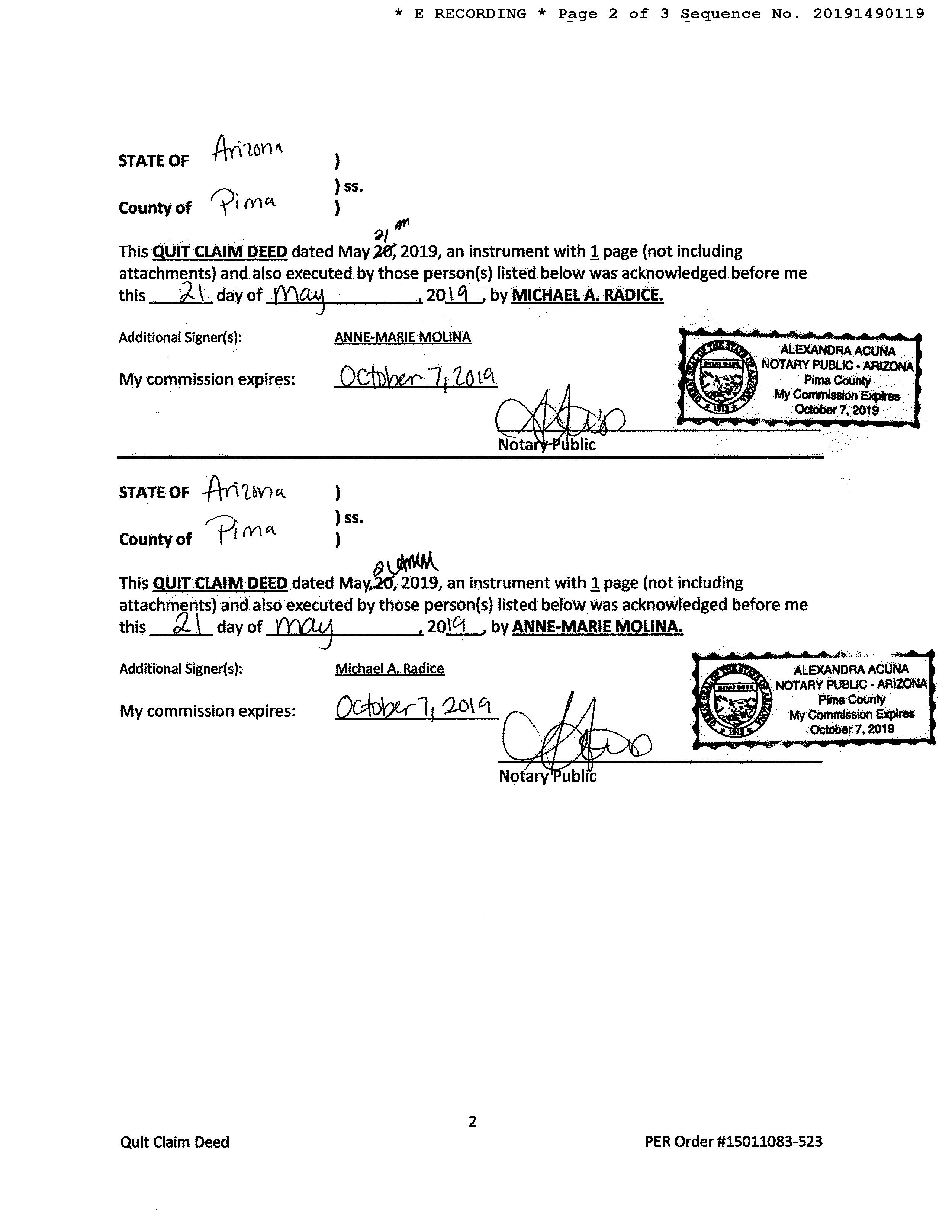 Deed Type : Quit Claim Deed Document # : 1490119