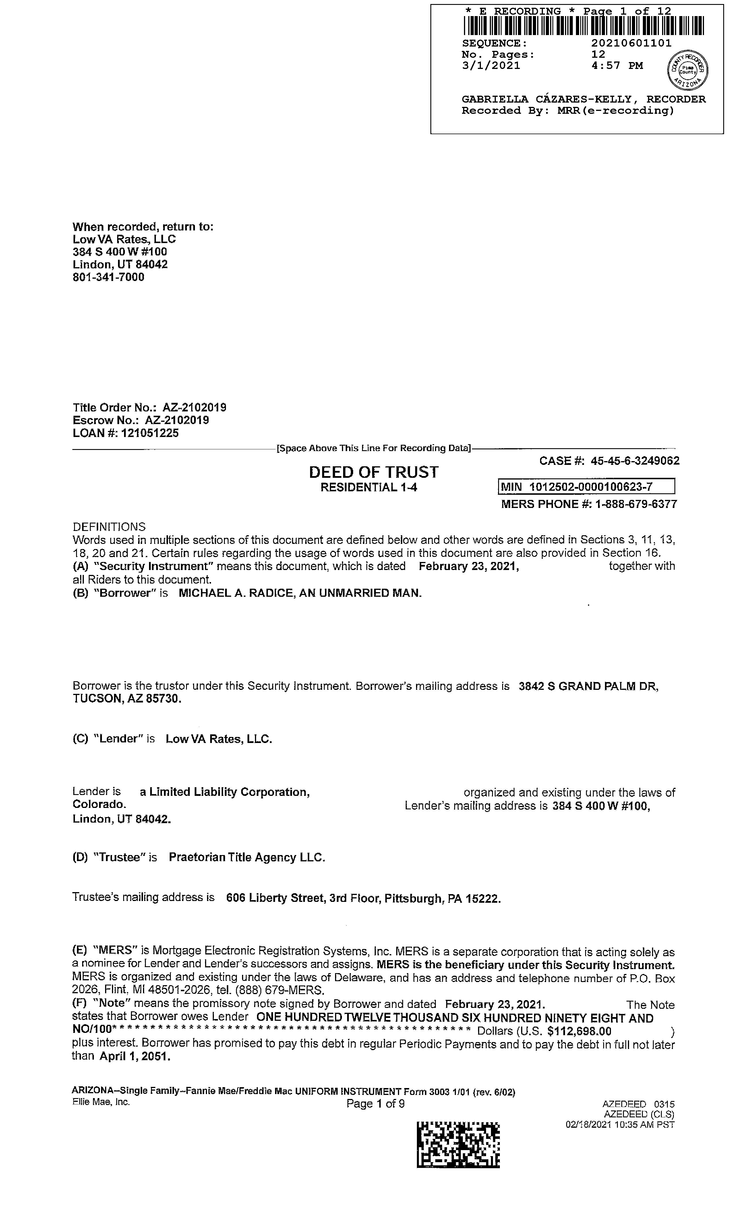 Owner Name: Radice Michael A / APN / Alternate APN: 136-38-3570 / Deed Type: Warranty Deed