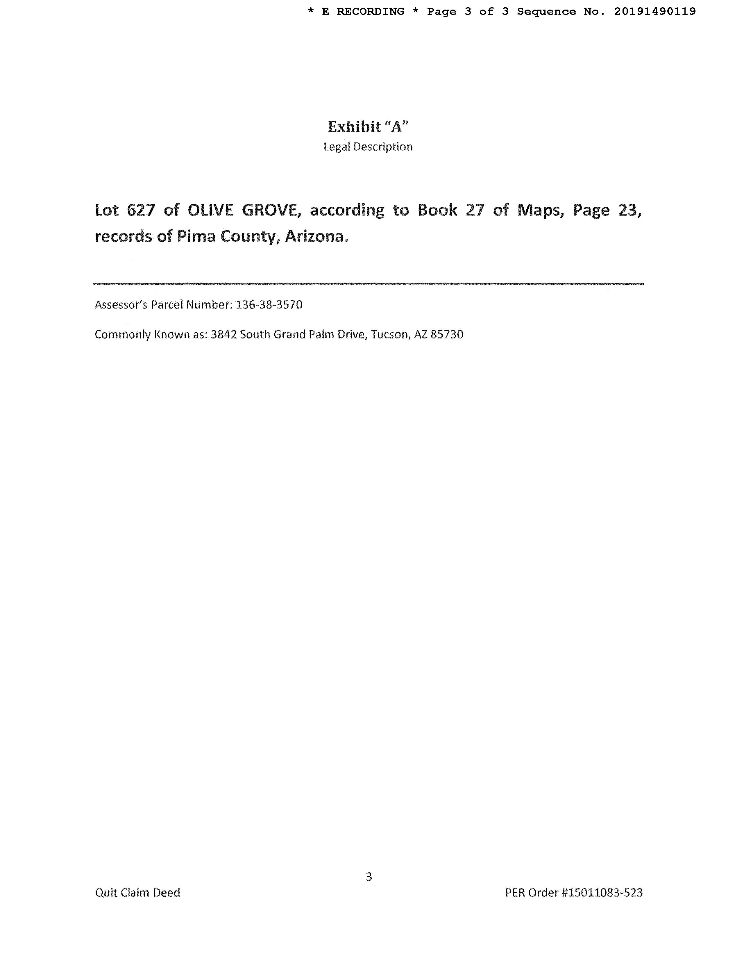 Subject Property : 3842 S Grand Palm Dr Tucson AZ 85730