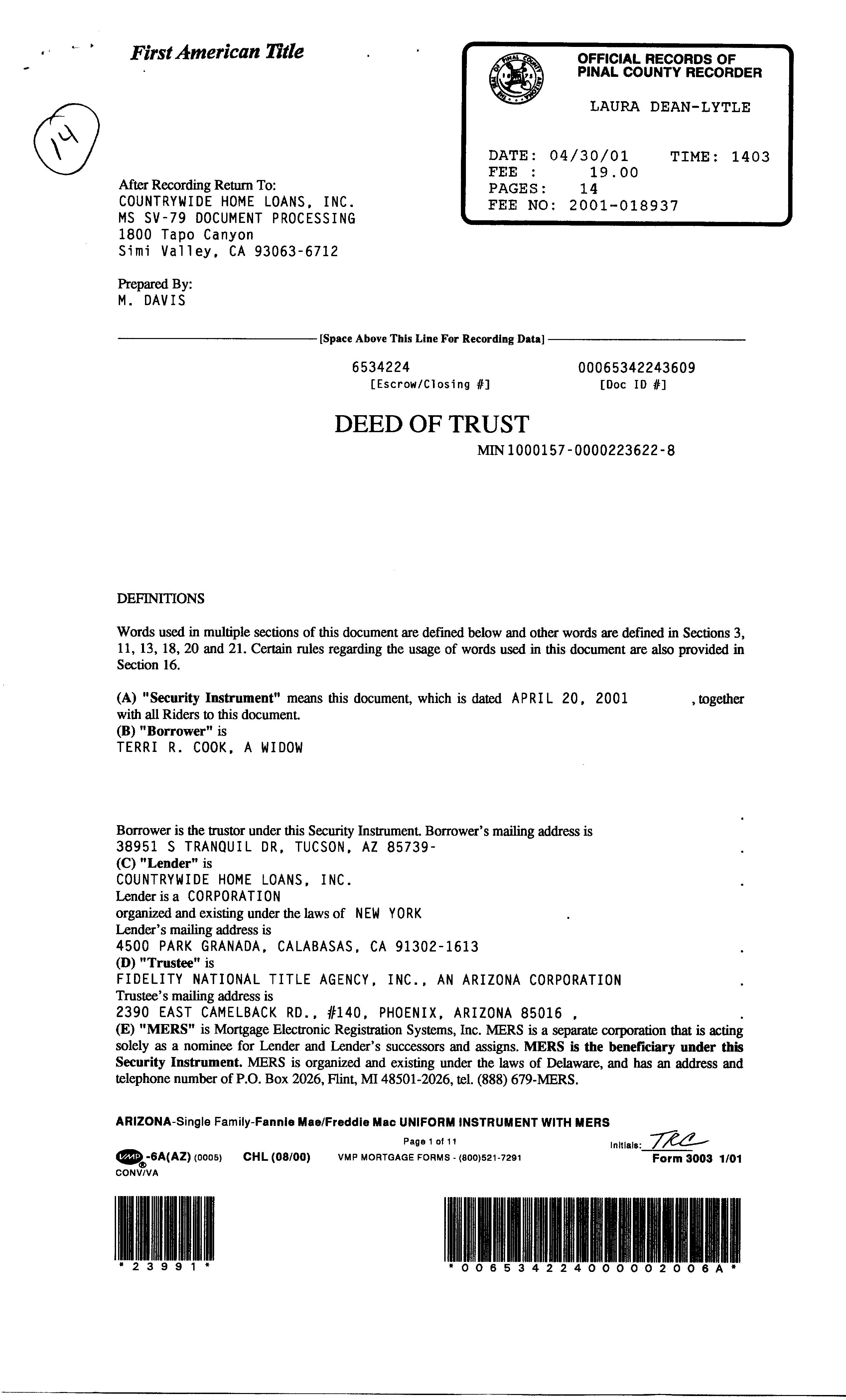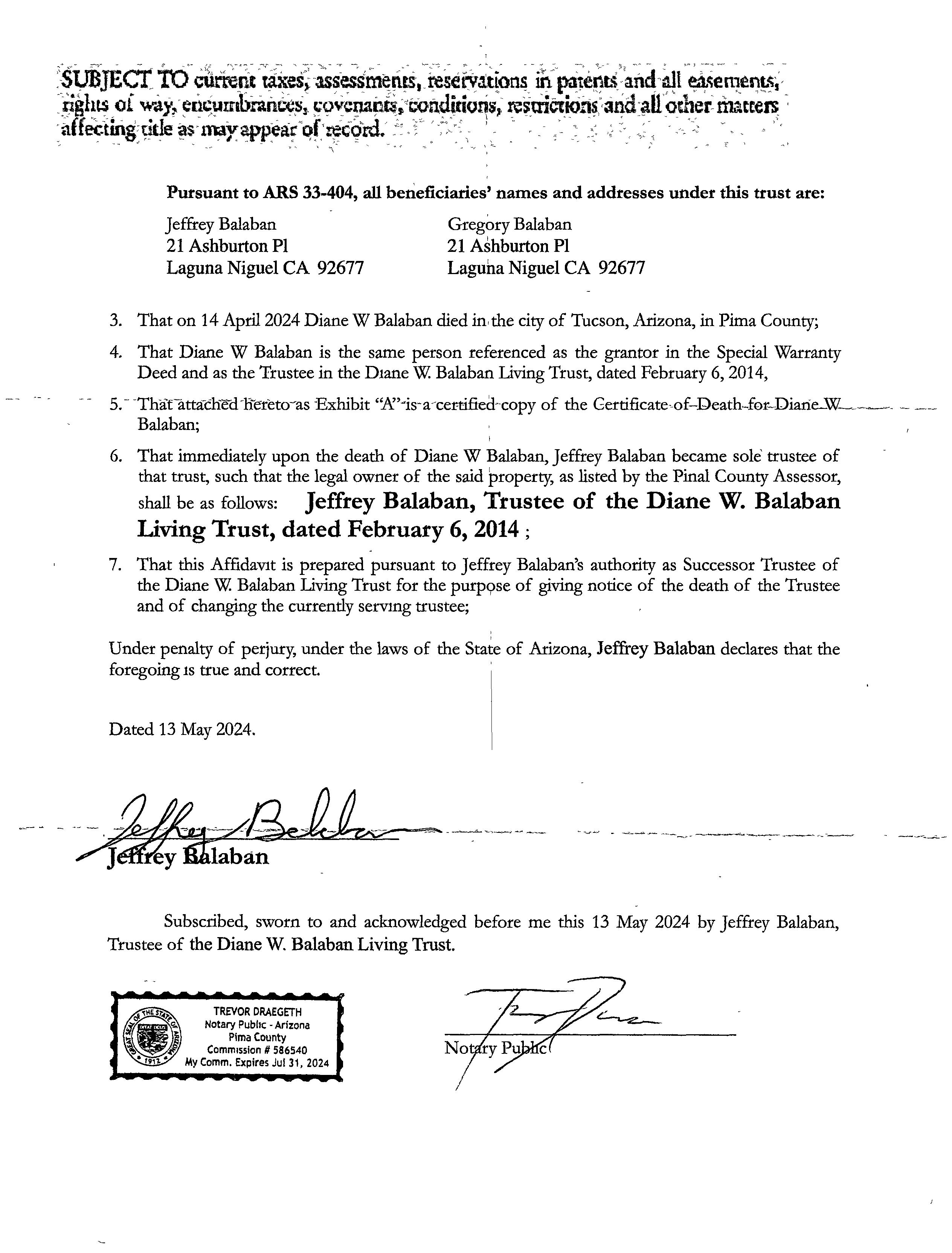 Subject Property : 38951 S Tranquil Dr Tucson AZ 85739