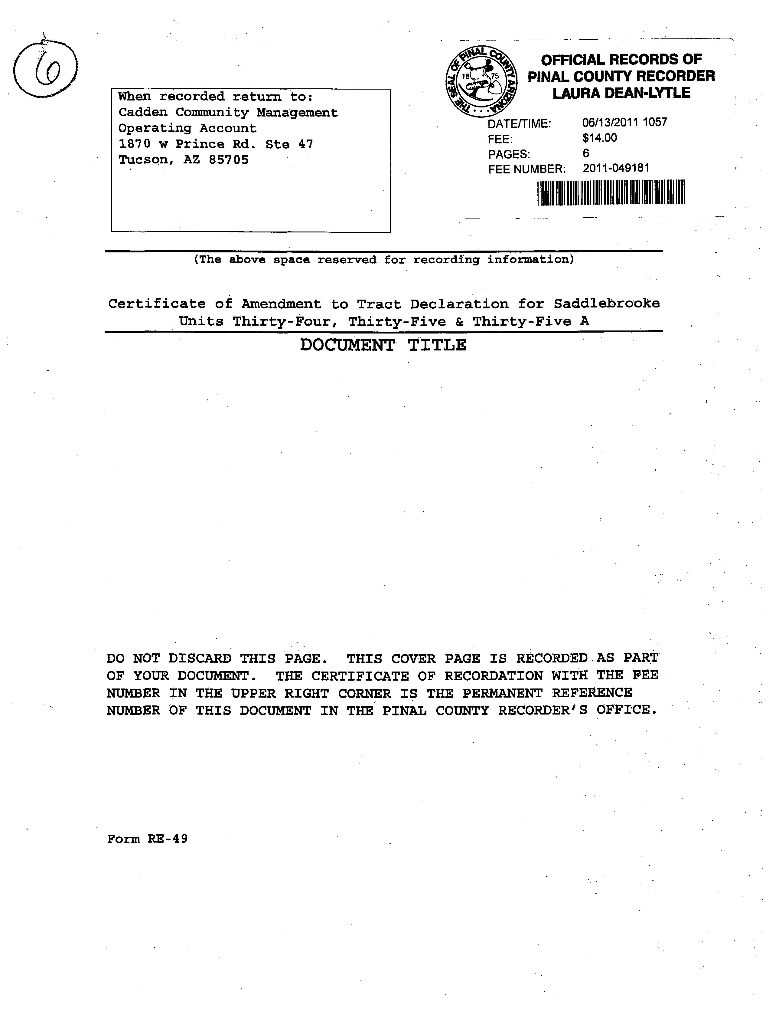 Legal Description : Lot 104 Saddlebrooke Unit 35 Cab B Sld 141 Sec 34-10s-14e 3985.49sq Ft 0.09 Ac