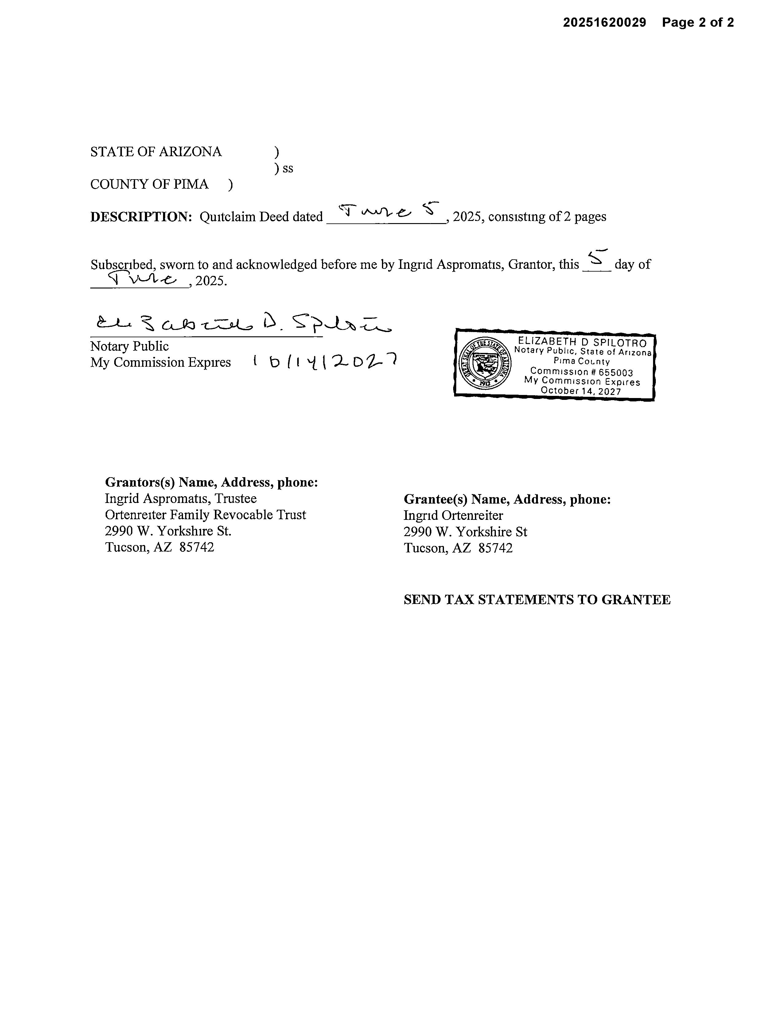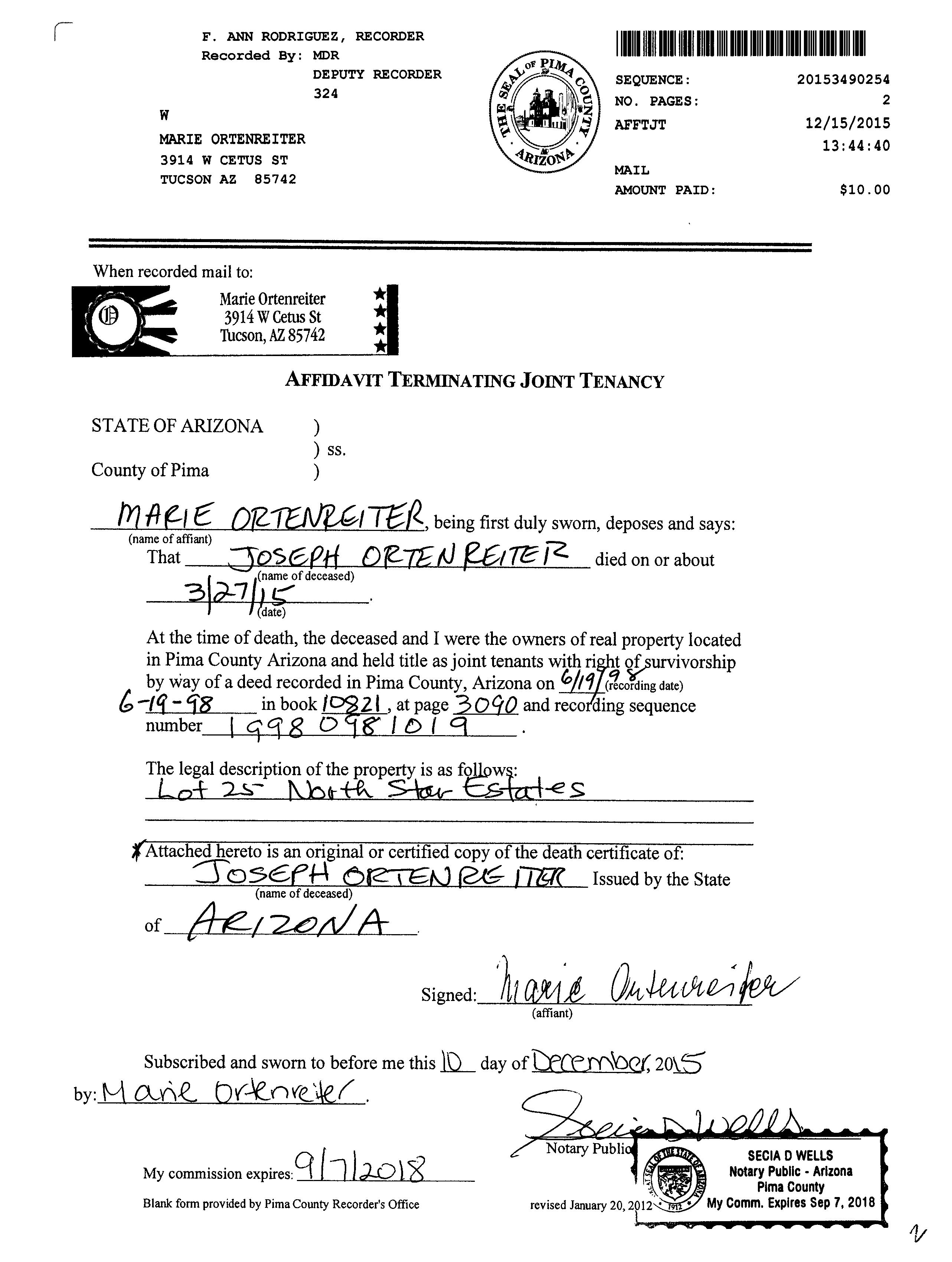 MAIL: ATTN: ORTENREITER FAMILY REVOC TR 3914 W CETUS TUCSON AZ 85742-5024