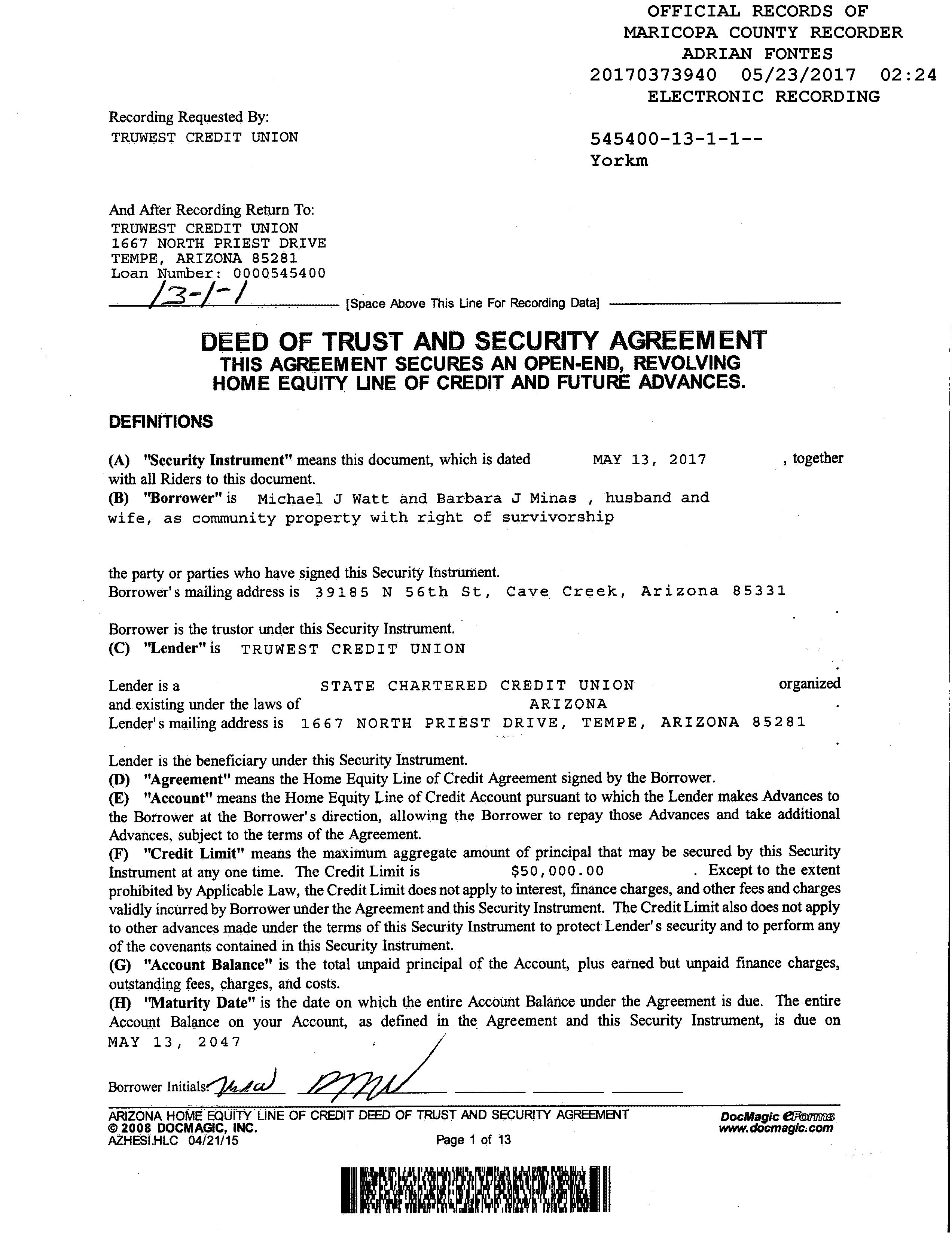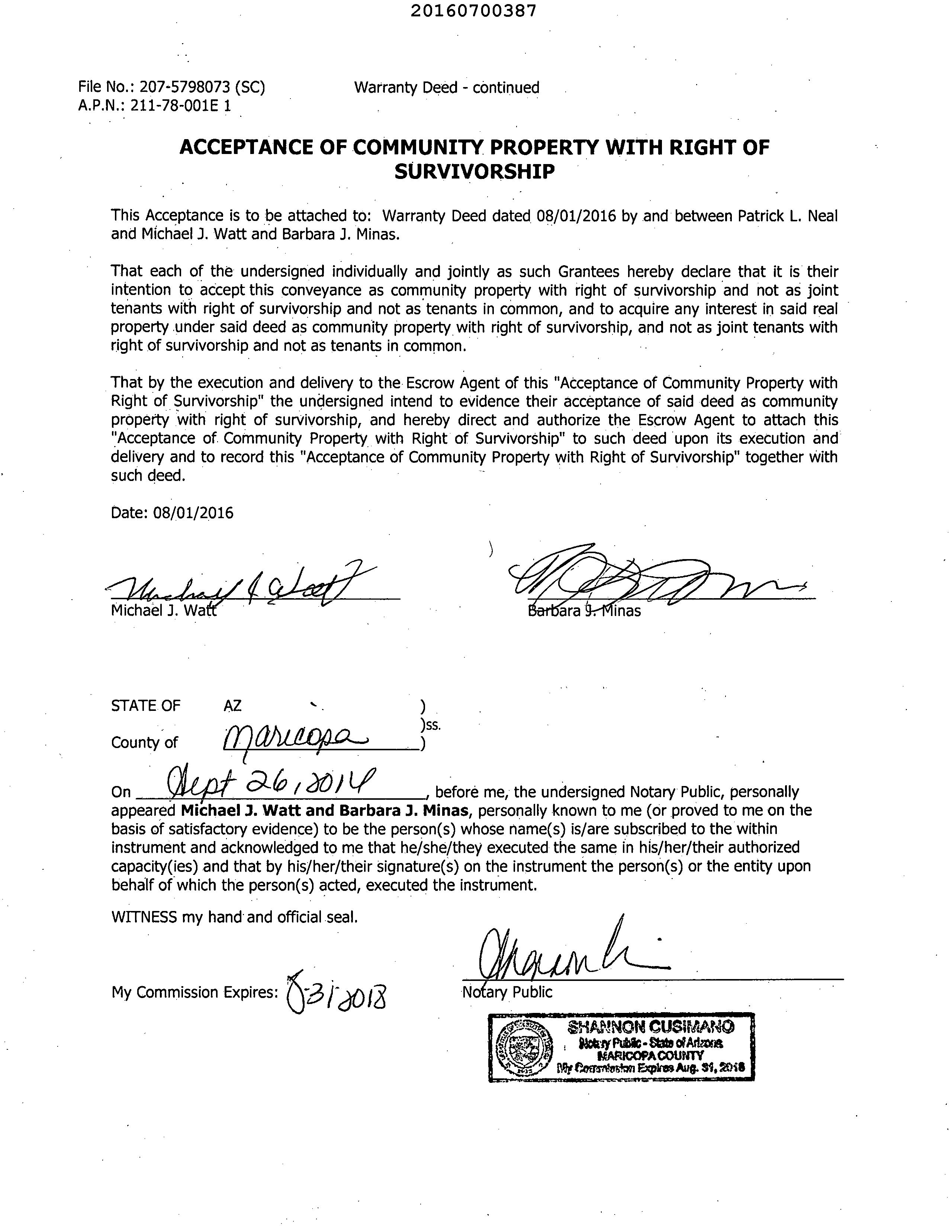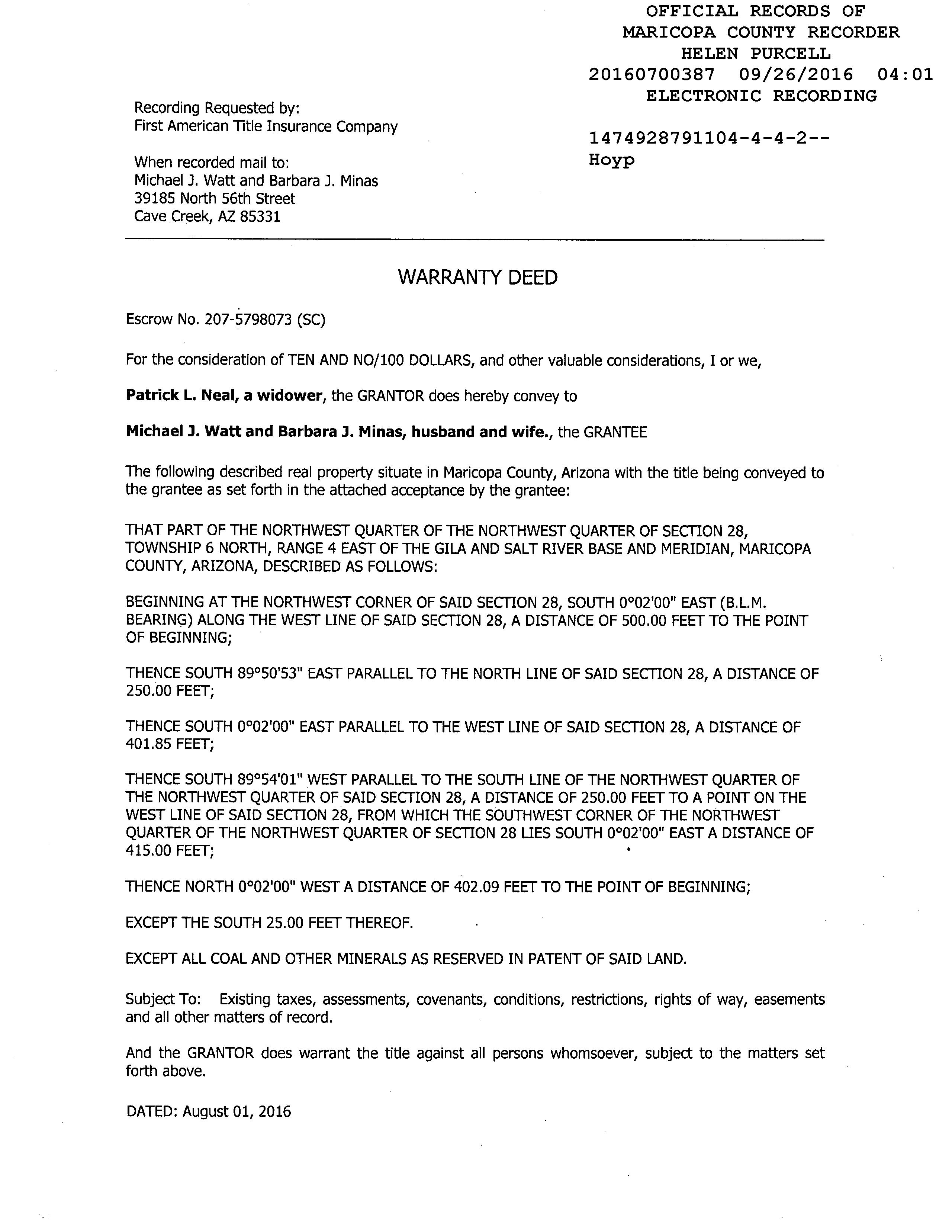 OWNER: WATT MICHAEL J 2016 700387 09/26/2016