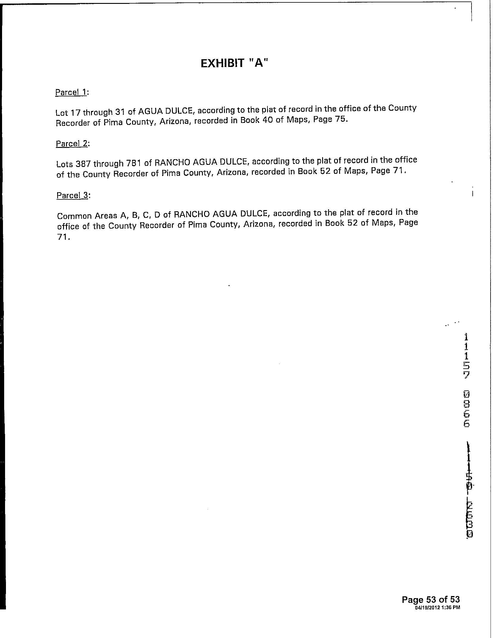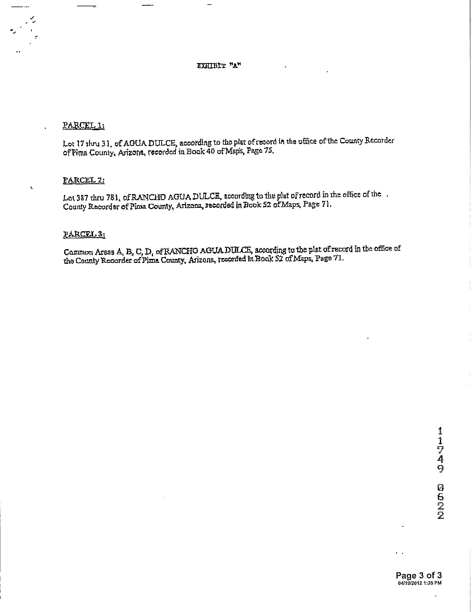 Legal Description : Rancho Agua Dulce Lot 691 County : Pima, Az