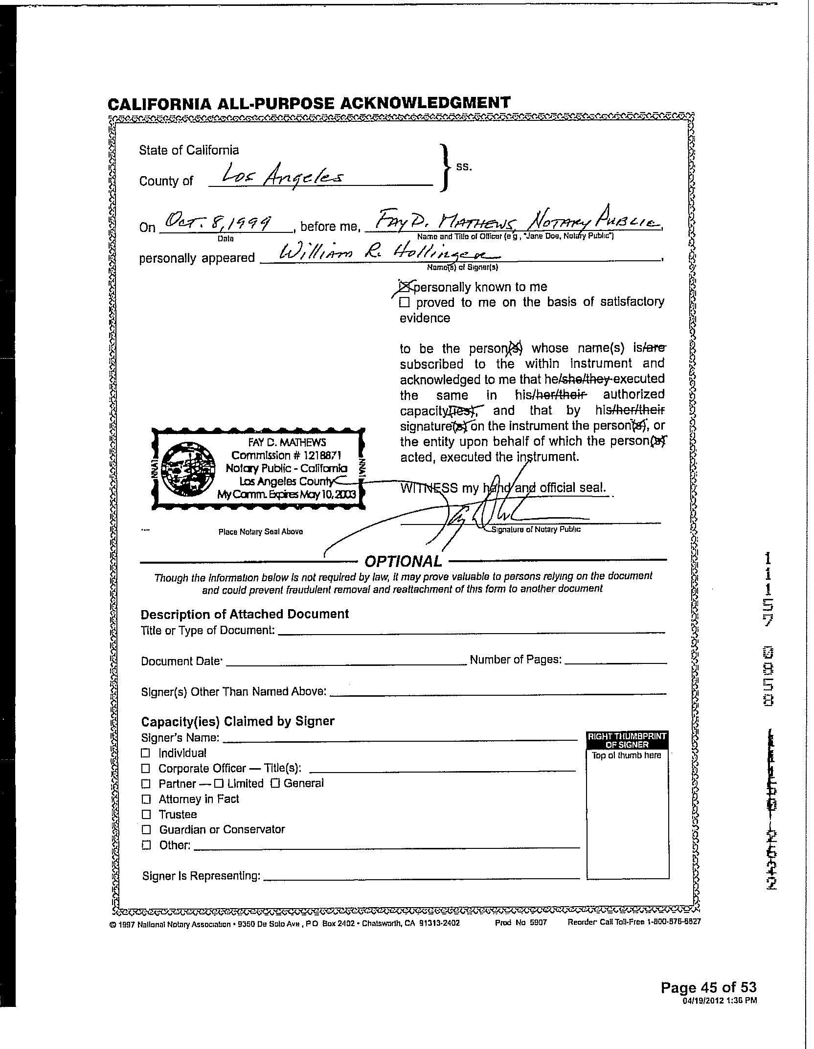 Agua Dulce Rho Sale Date : 12/27/2001 Recording Date : 01/02/2002