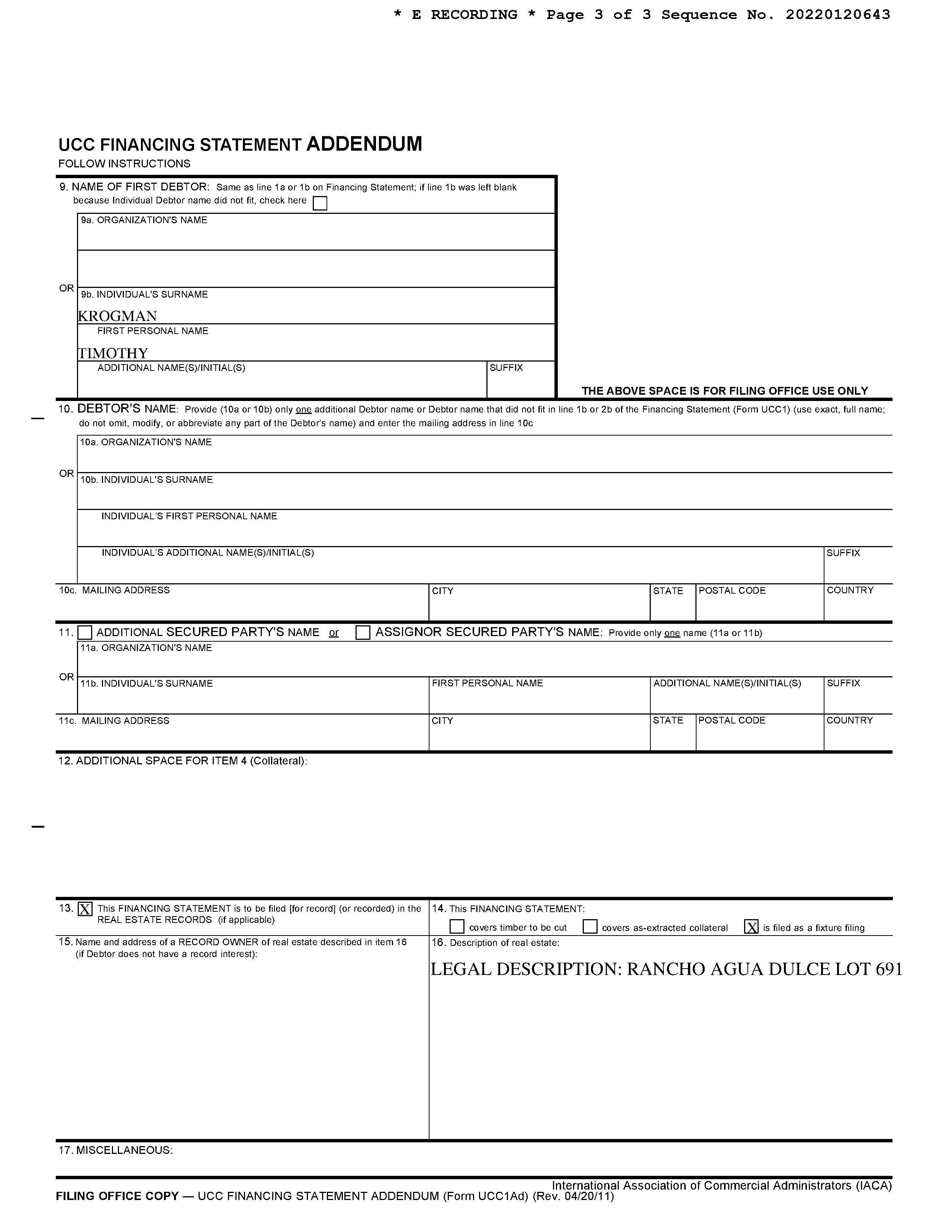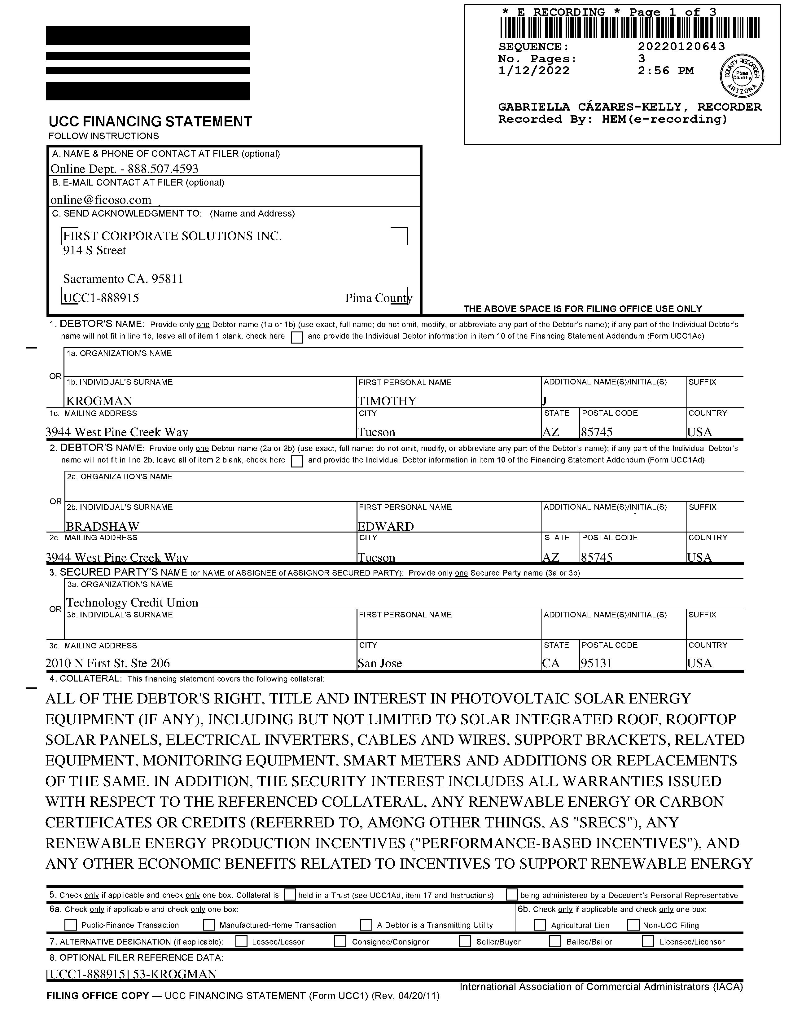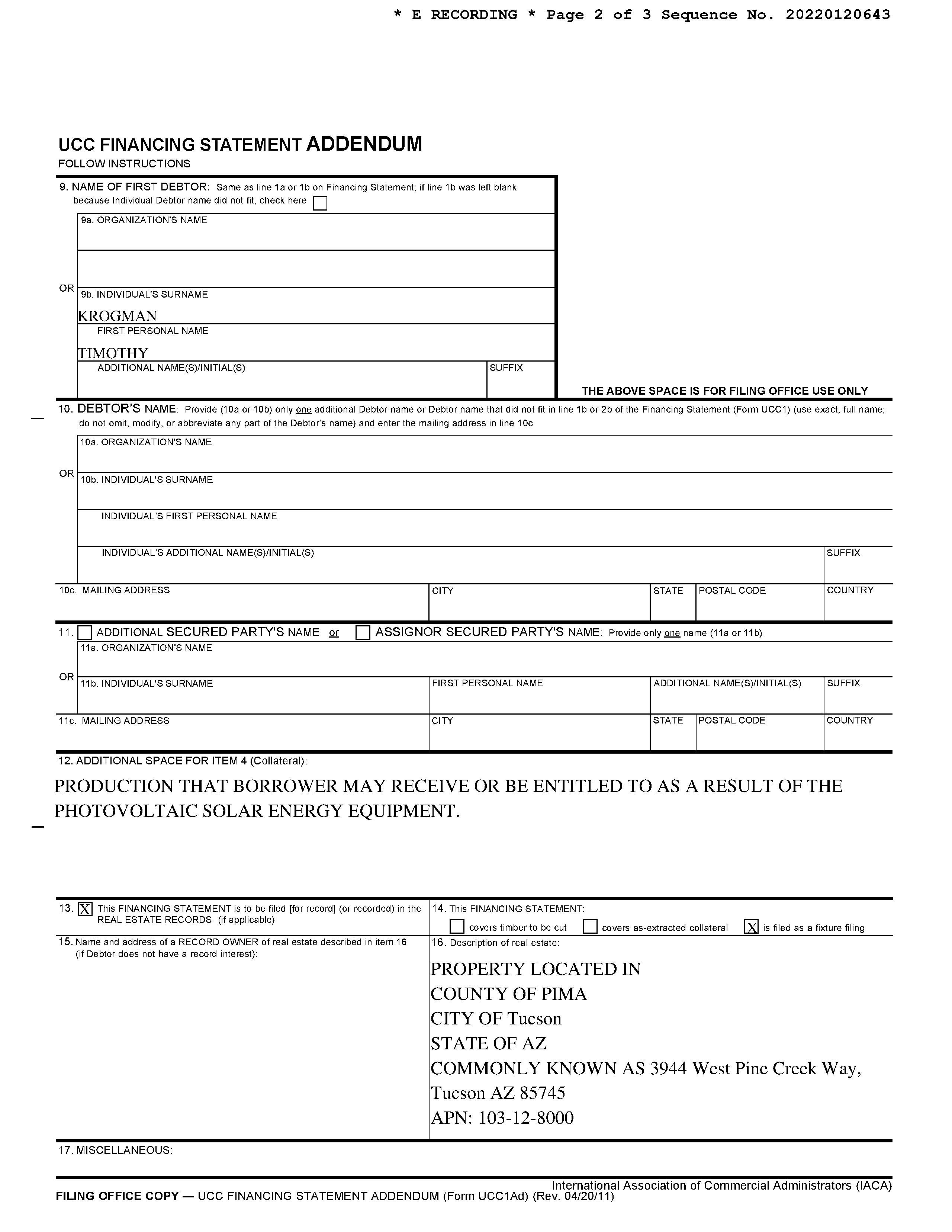 Subject Property: 3944 W Pine Creek Way Tucson Az 85745 Owner Name: Krogman