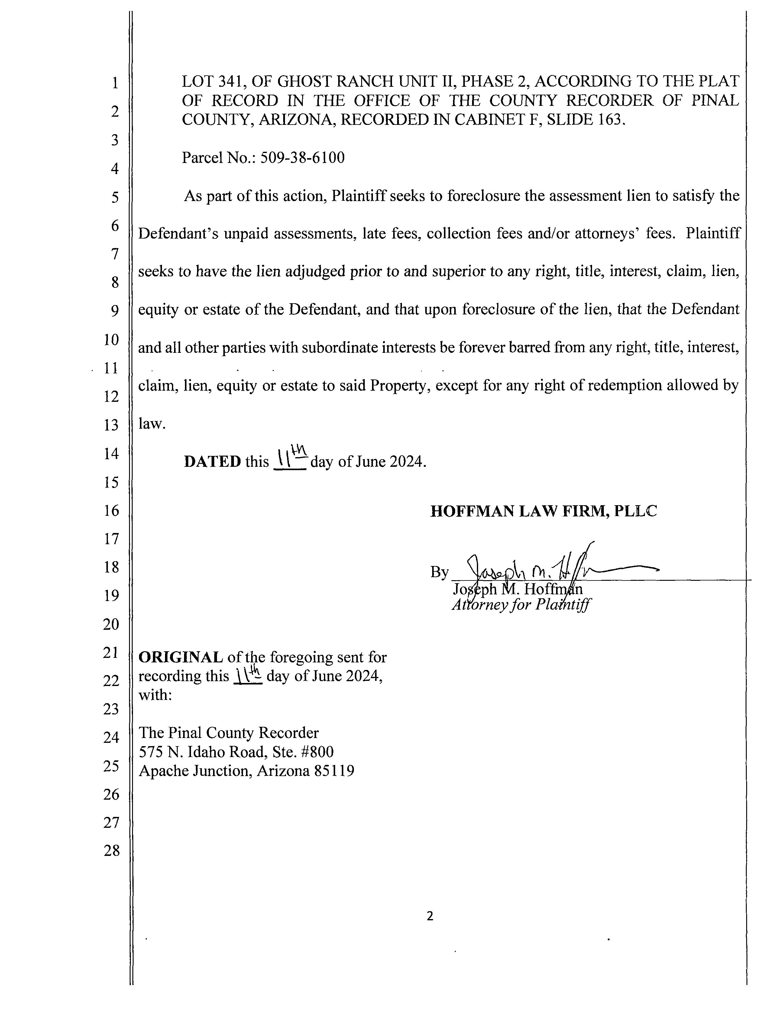 Subdivision : Ghost Ranch Ph 2 Customer Name : Kariann Keomaka Customer Company Name : First American Title Insurance Company Prepared On : 08/16/2024