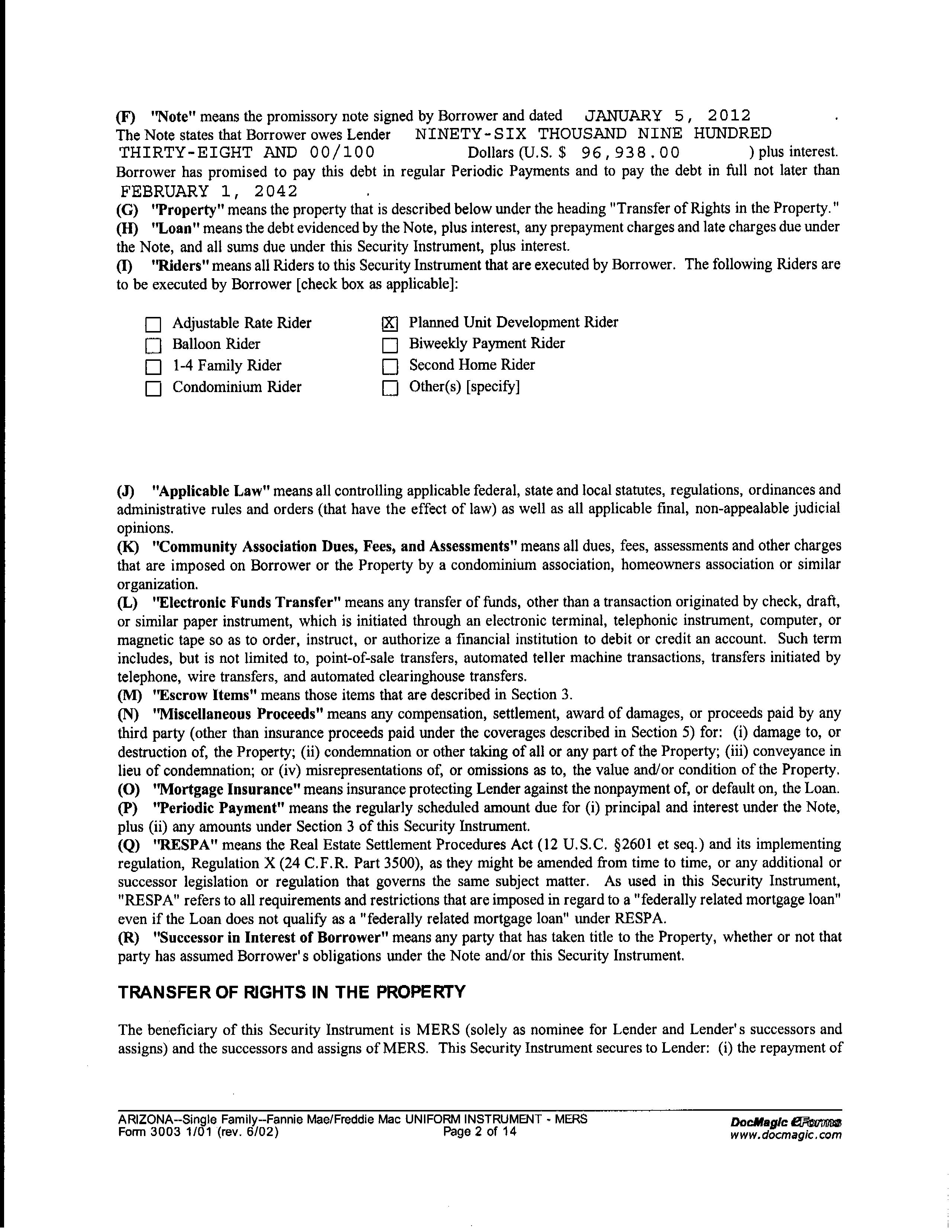 Recording/Sale Date : 01/13/2012 / 12/21/2011 1st Mtg Amount/Type : $96,938 / Cnv