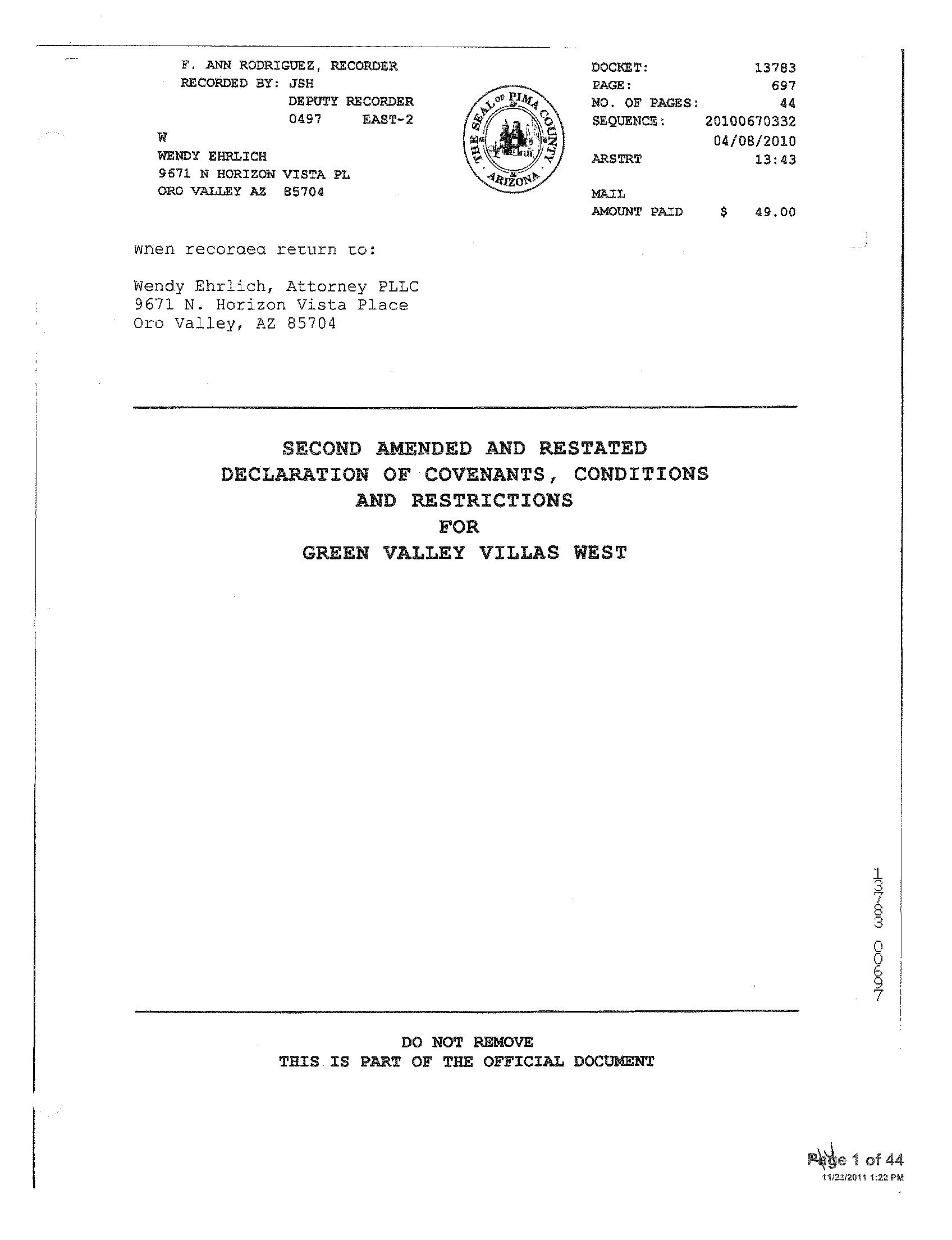 Subject Property : 402 S Paseo Quinta Green Valley AZ 85614