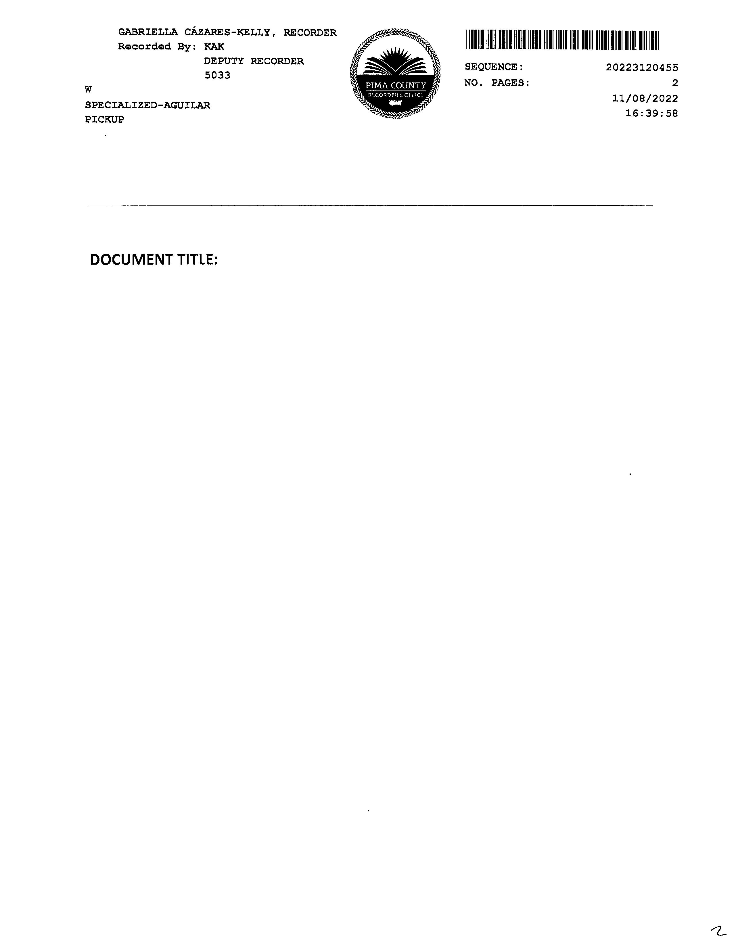 This information is furnished without fee and without benefit of a complete title search. No liability is assumed by First American Title. If it is desired that liability be assumed, you may apply for a policy of title insurance with First American Title Insurance Company.