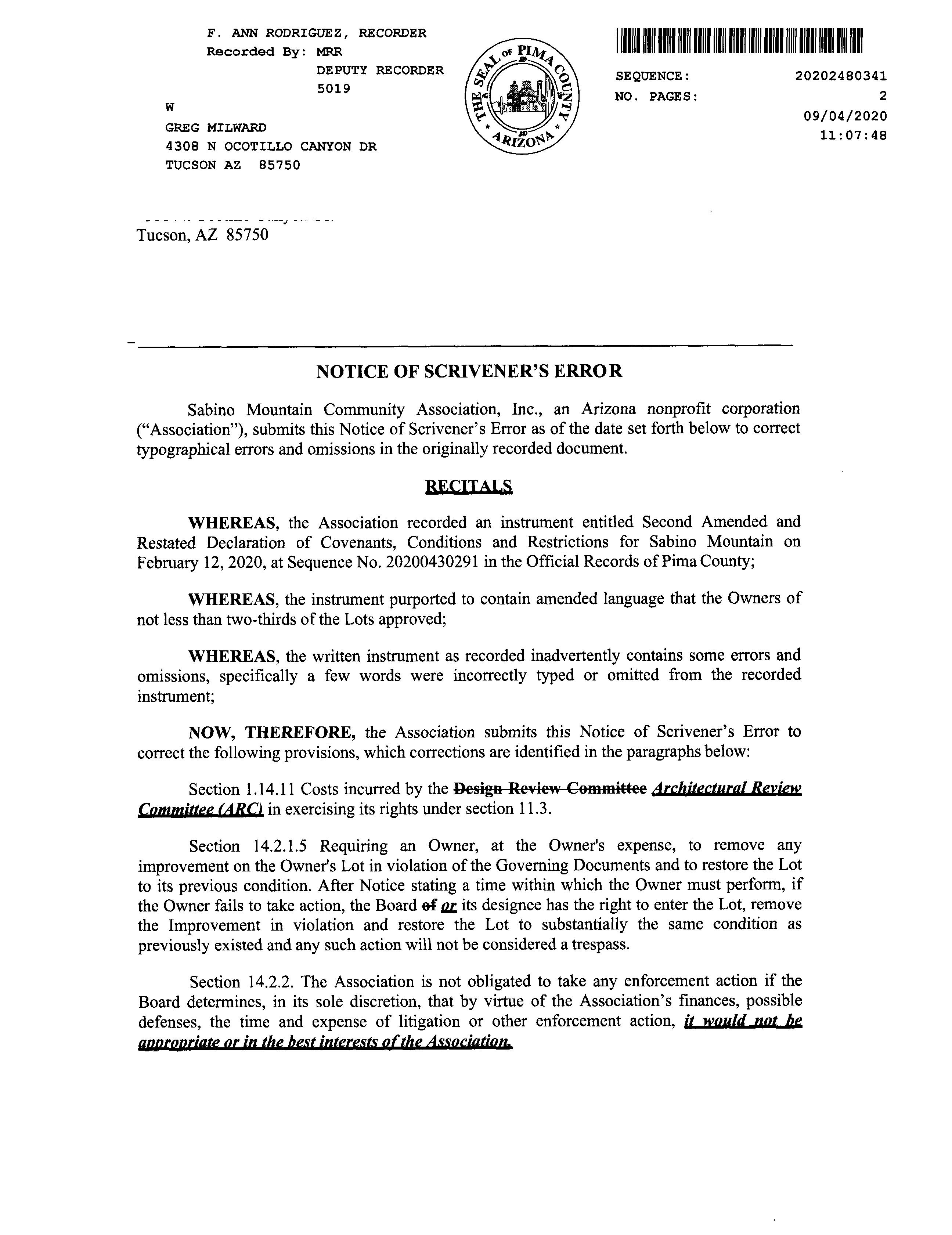 12003 6131 WD MONTEREY HOMES ARIZONA INC 01/16/2001 960,000 11465 2149 SD RSRF SABINO TERRACE COMPAN M