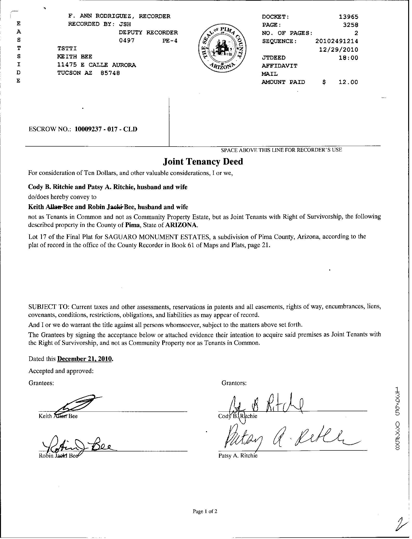 Owner Name : Carrell David Joseph Subdivision : Saguaro Monument Estates