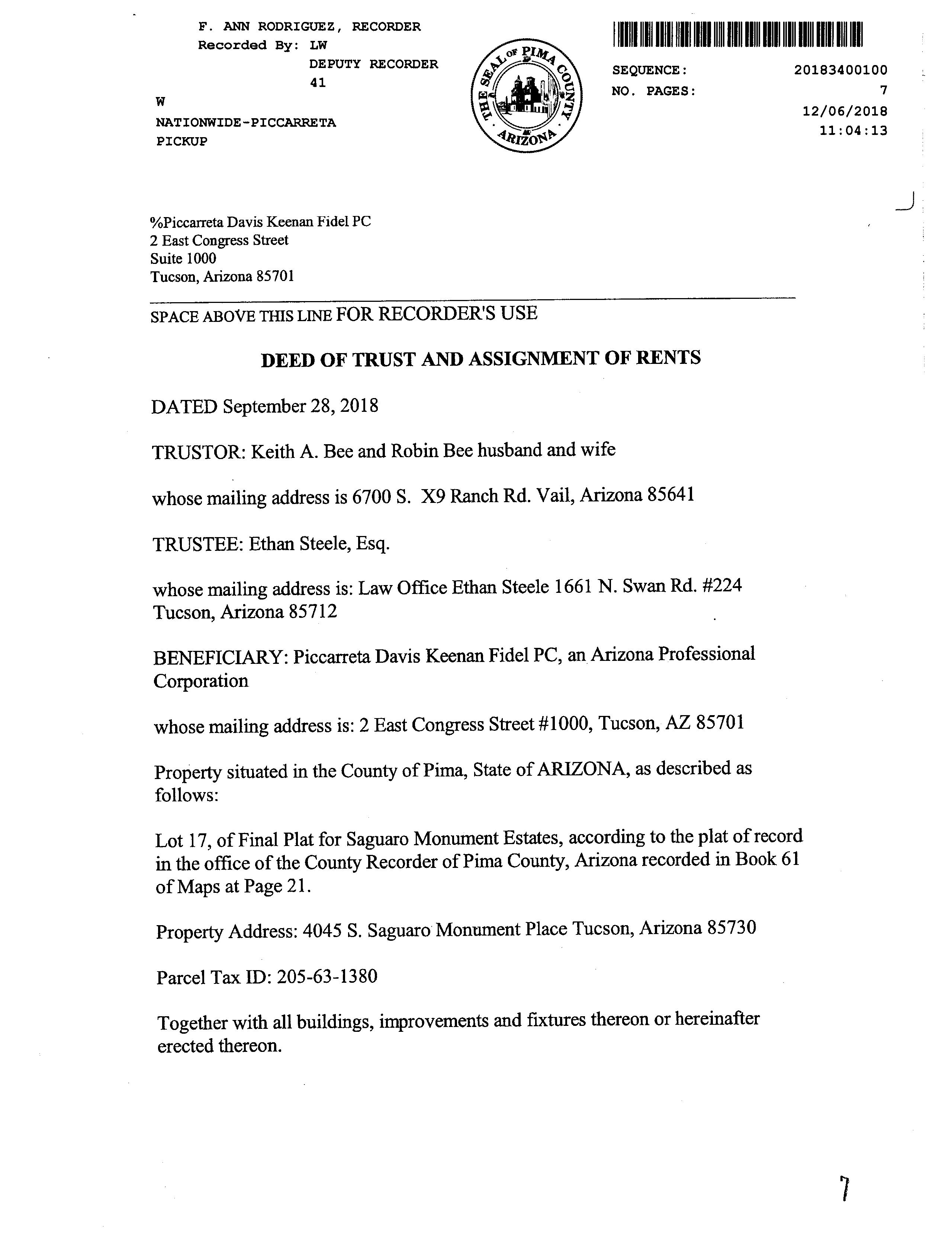 Mailing Address : 4045 S Saguaro Monument Pl, Tucson AZ 85730-5077 C067