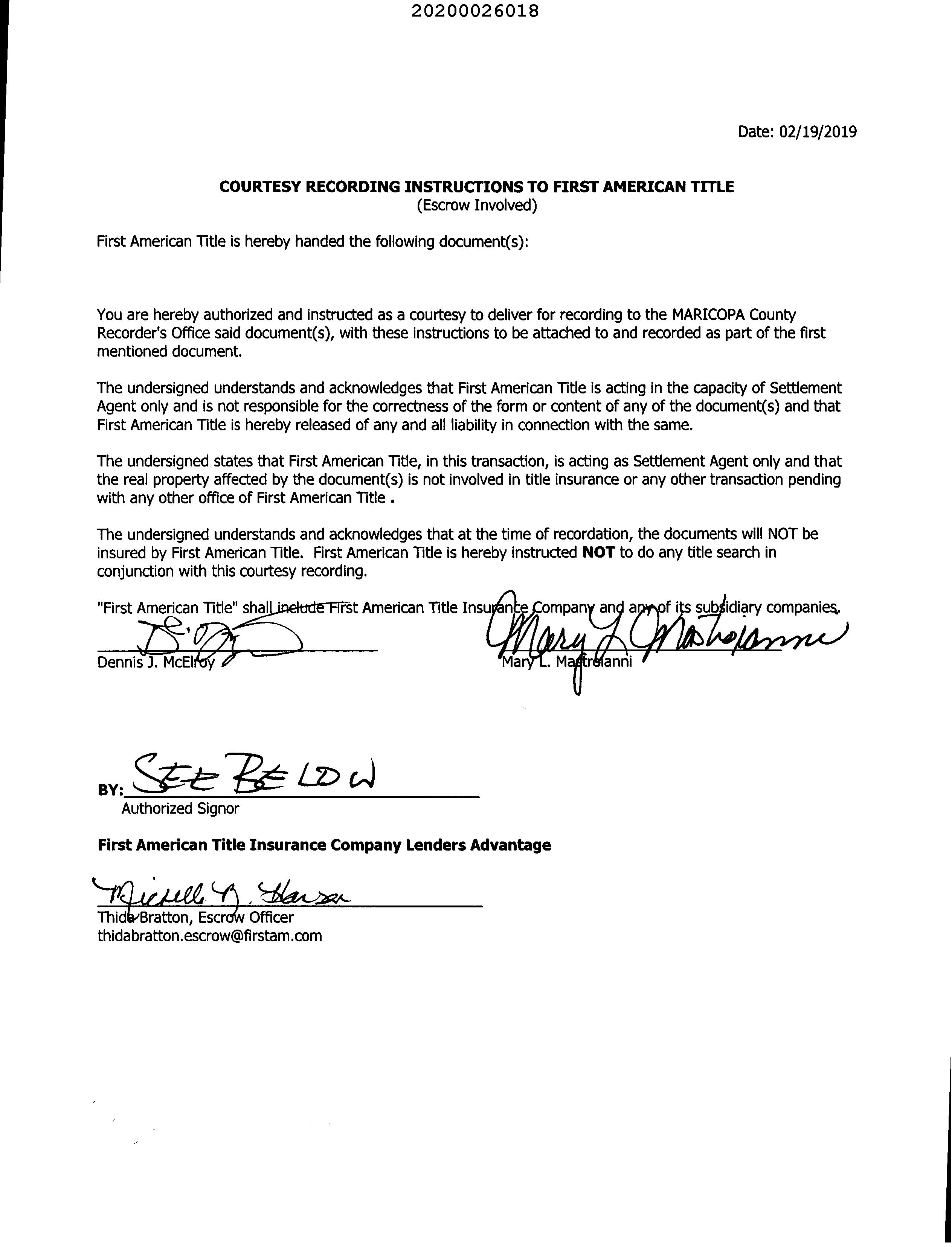 Title Company : First American Title