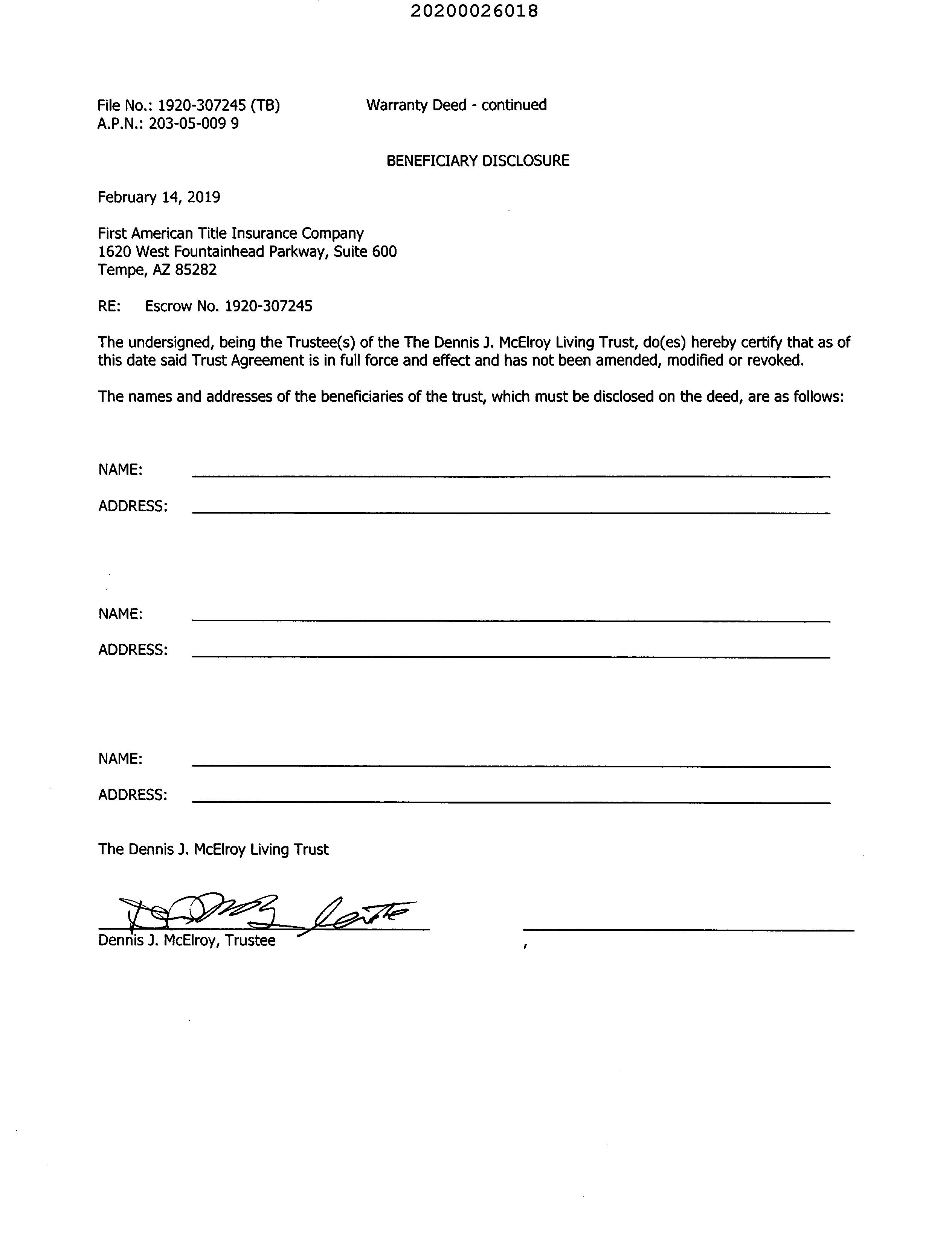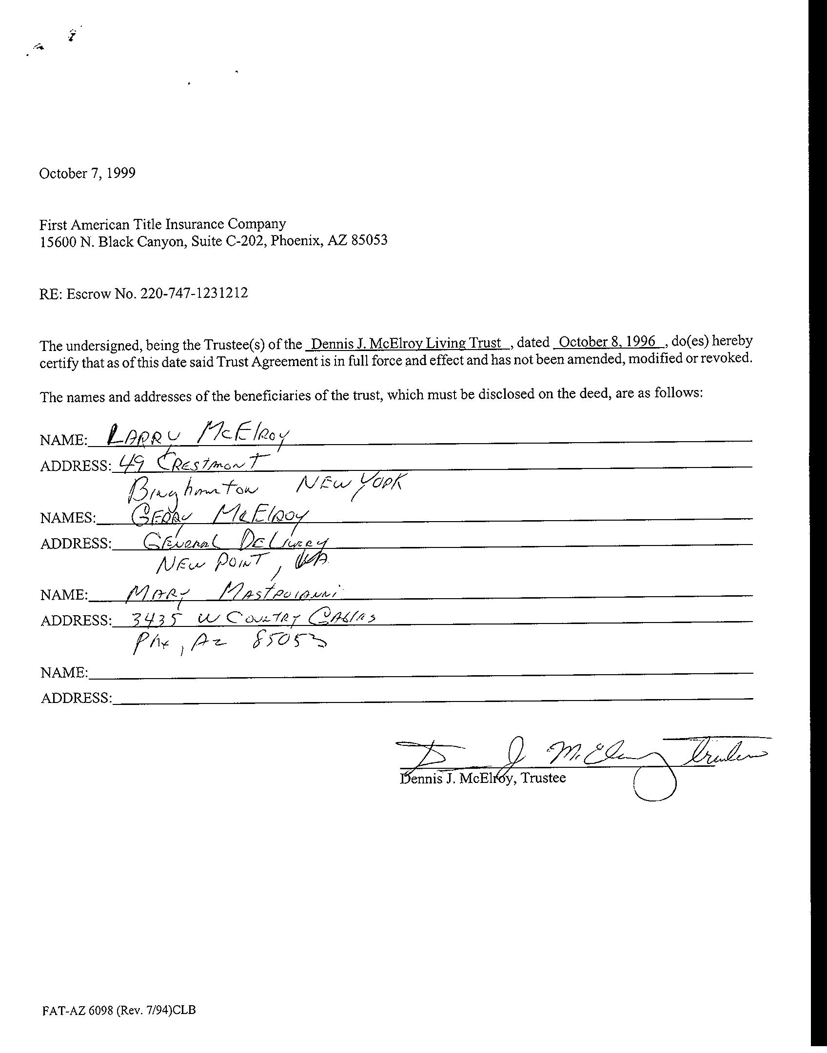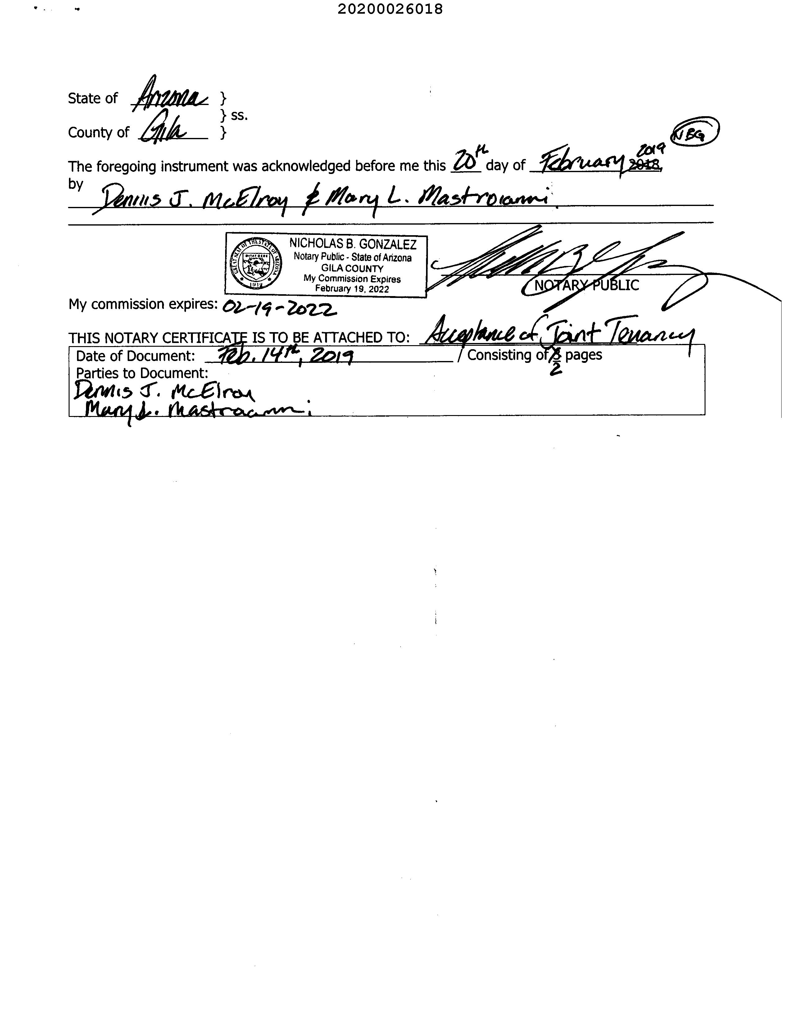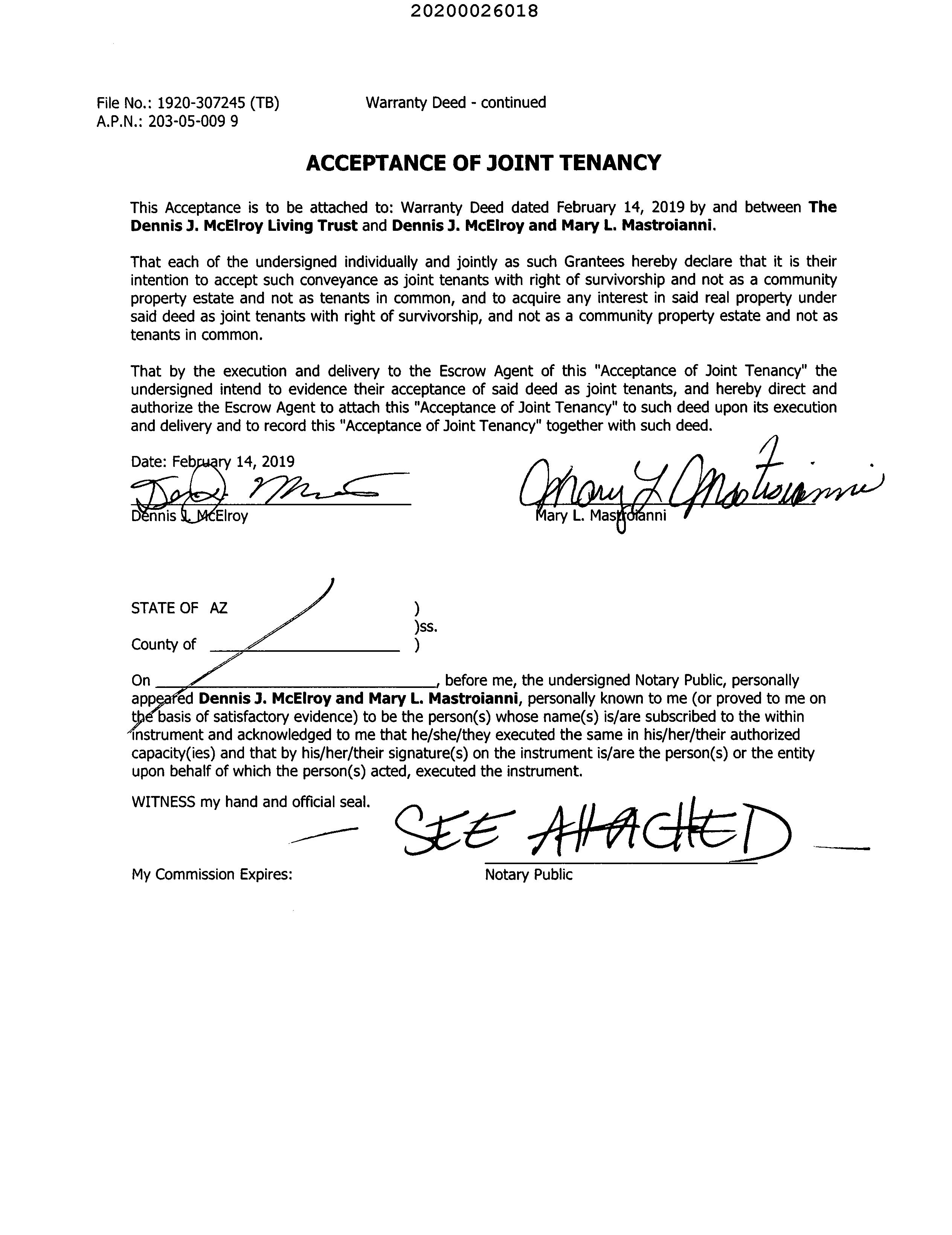 Owner Name : Mcelroy Dennis J / Mastroianni Mary L