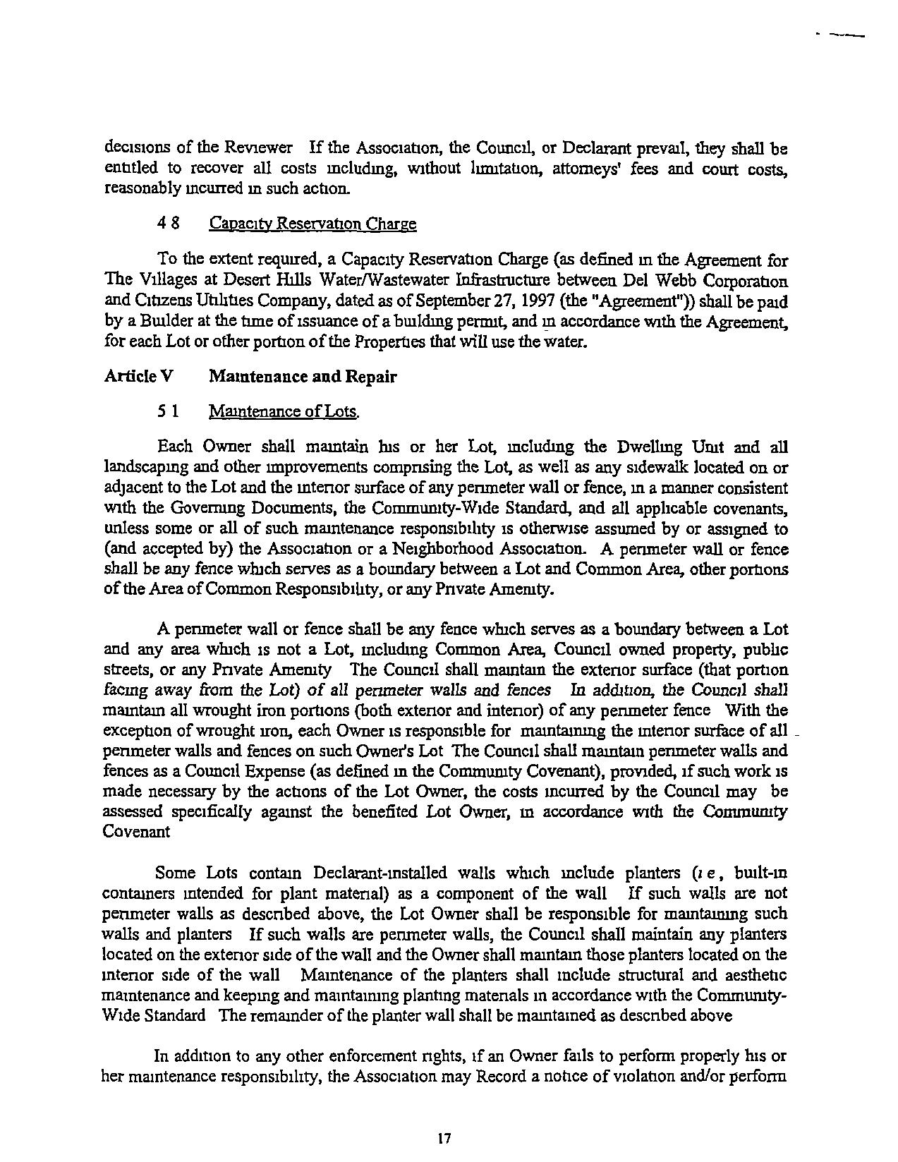 "Cornmurutv Covenant" The Declaration of Covenants and Easements for Anthem which governs theentireAnthemcommunityand,amongotherthmgs,establishestheCouncil's authonty to oversee community-wide affairs and provide commumty services and facilities,