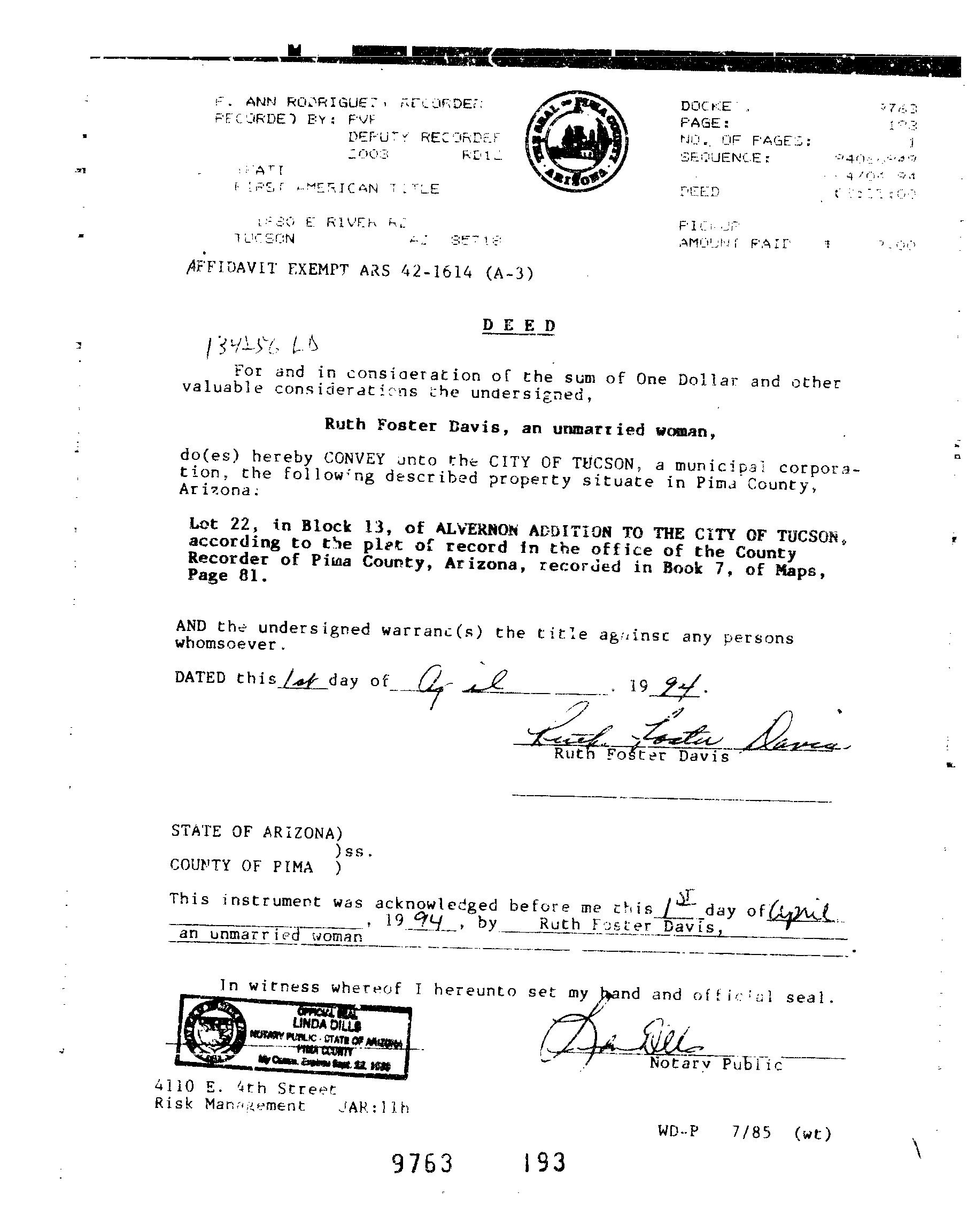 Owner Name : Ijams Family Subdivision : Alvernon Add