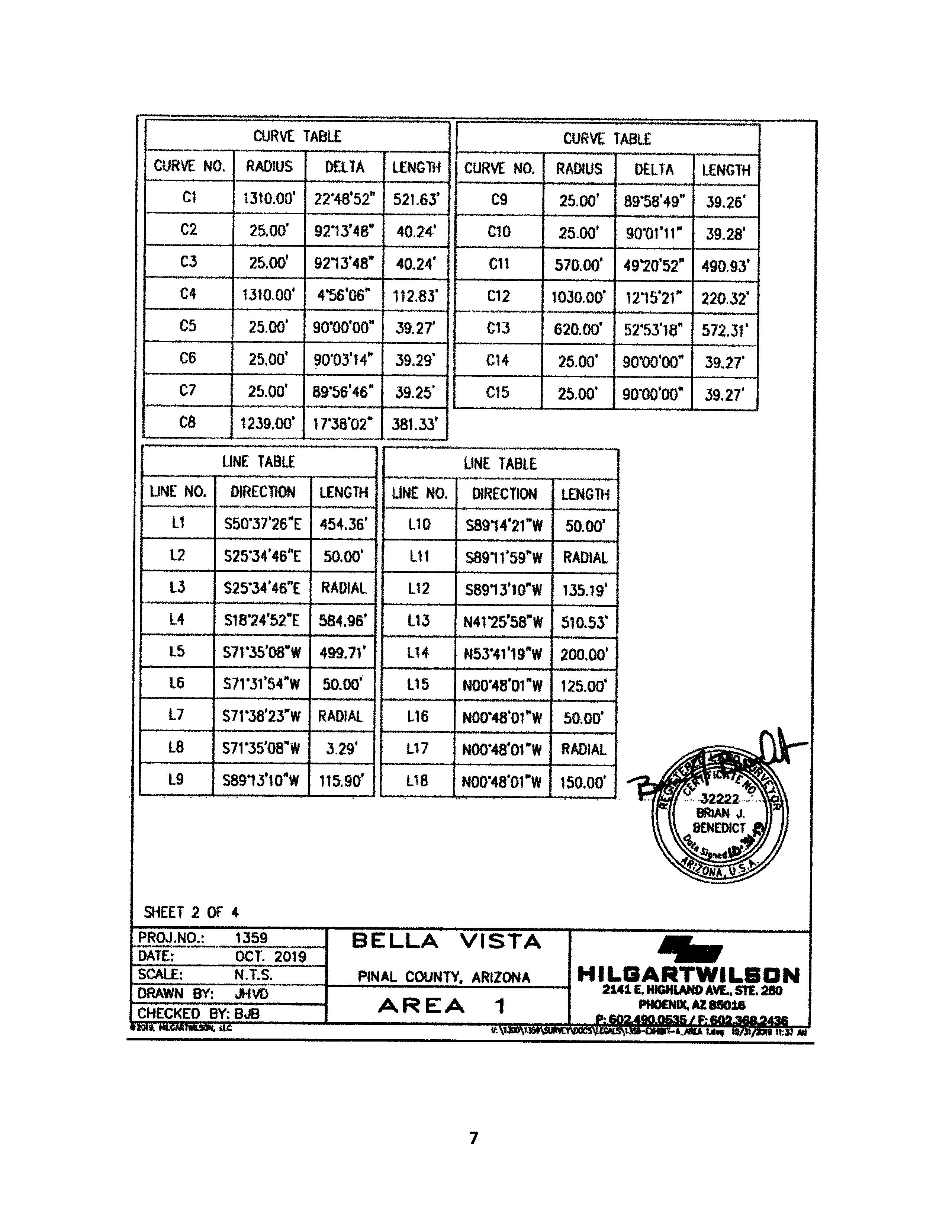 LEGAL: LOT 84 OF BELLA VISTA FARMS PARCELS C-D - PARCEL 2, ACCORDING TO THE PLAT OF RECORD IN THE OFFICE OF THE PINAL COUNTY RECORDER, ARIZONA, RECORDED IN PLAT FEE NO. 2021-124959; LOCATED IN SECTION 15, TOWNSHIP 03 SOUTH, RANGE 08 EAST, 5,151 SQUARE FEET, 0.12 ACRES