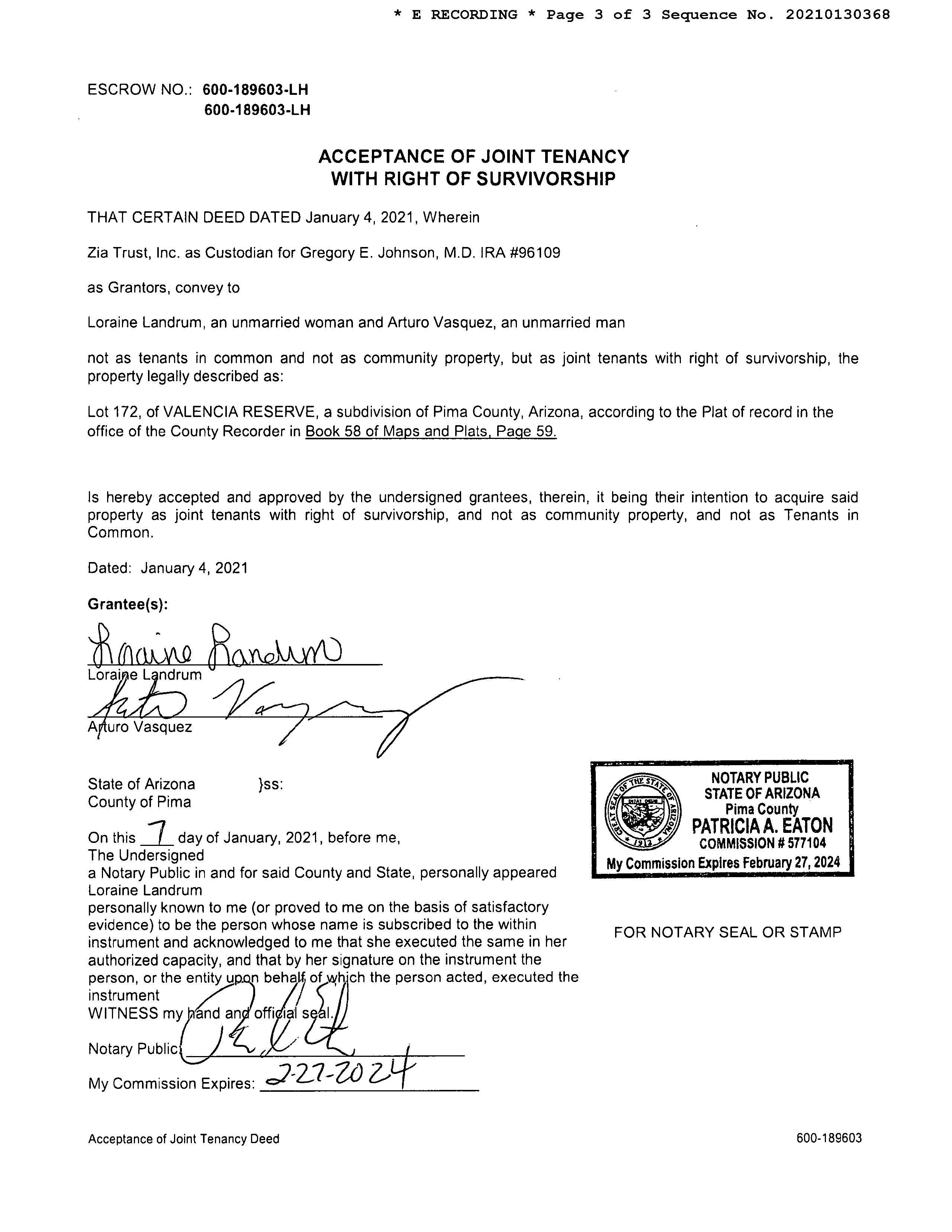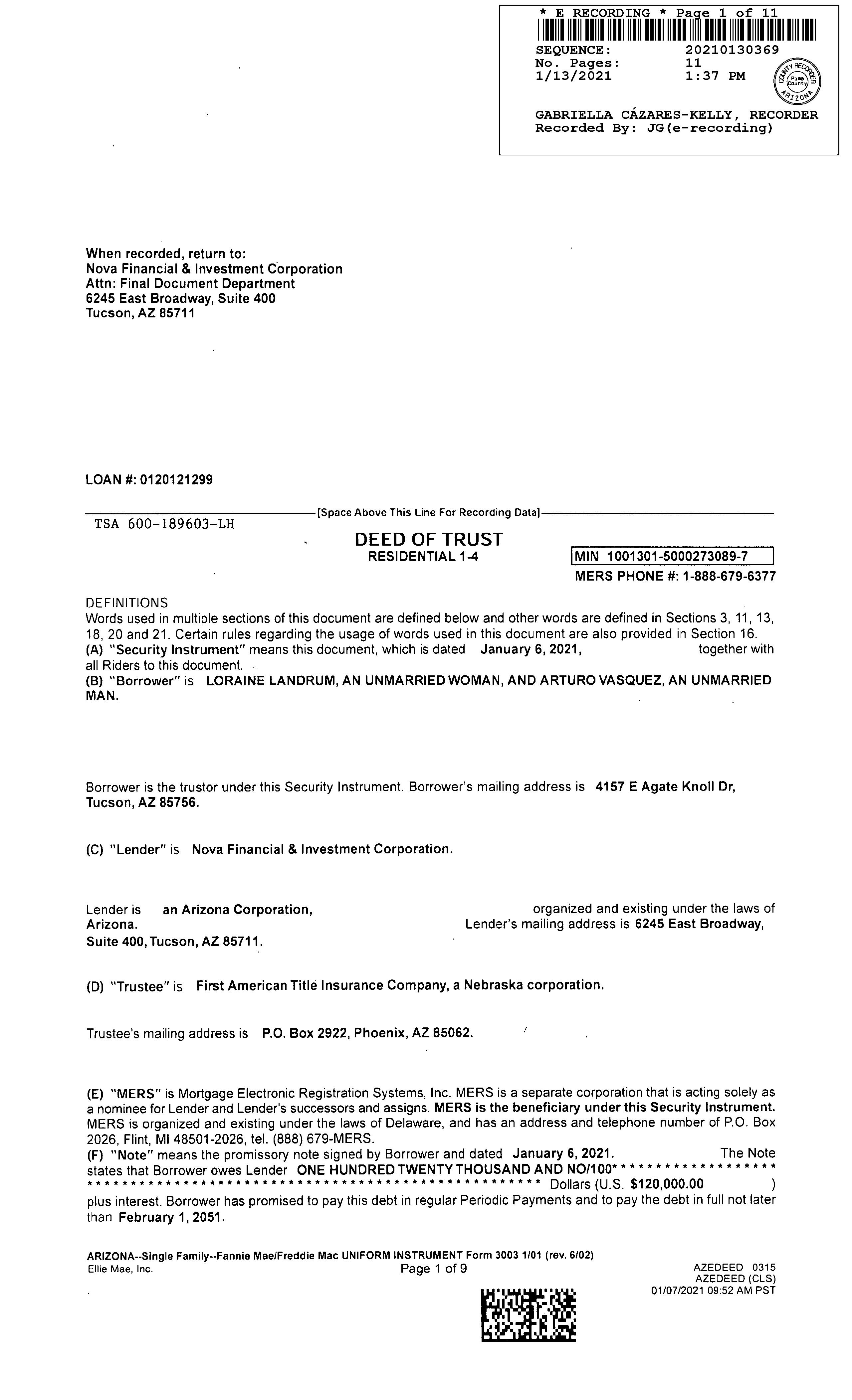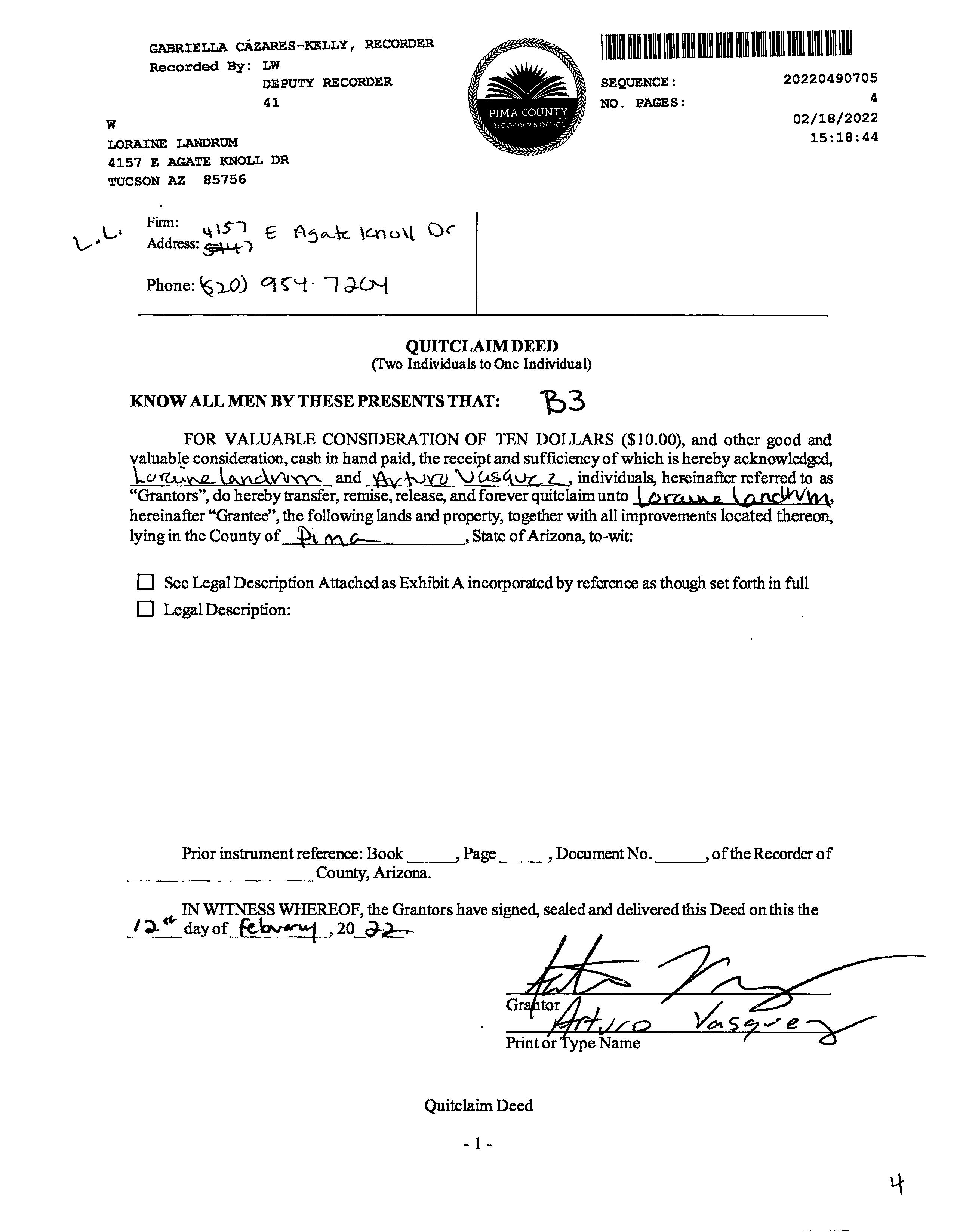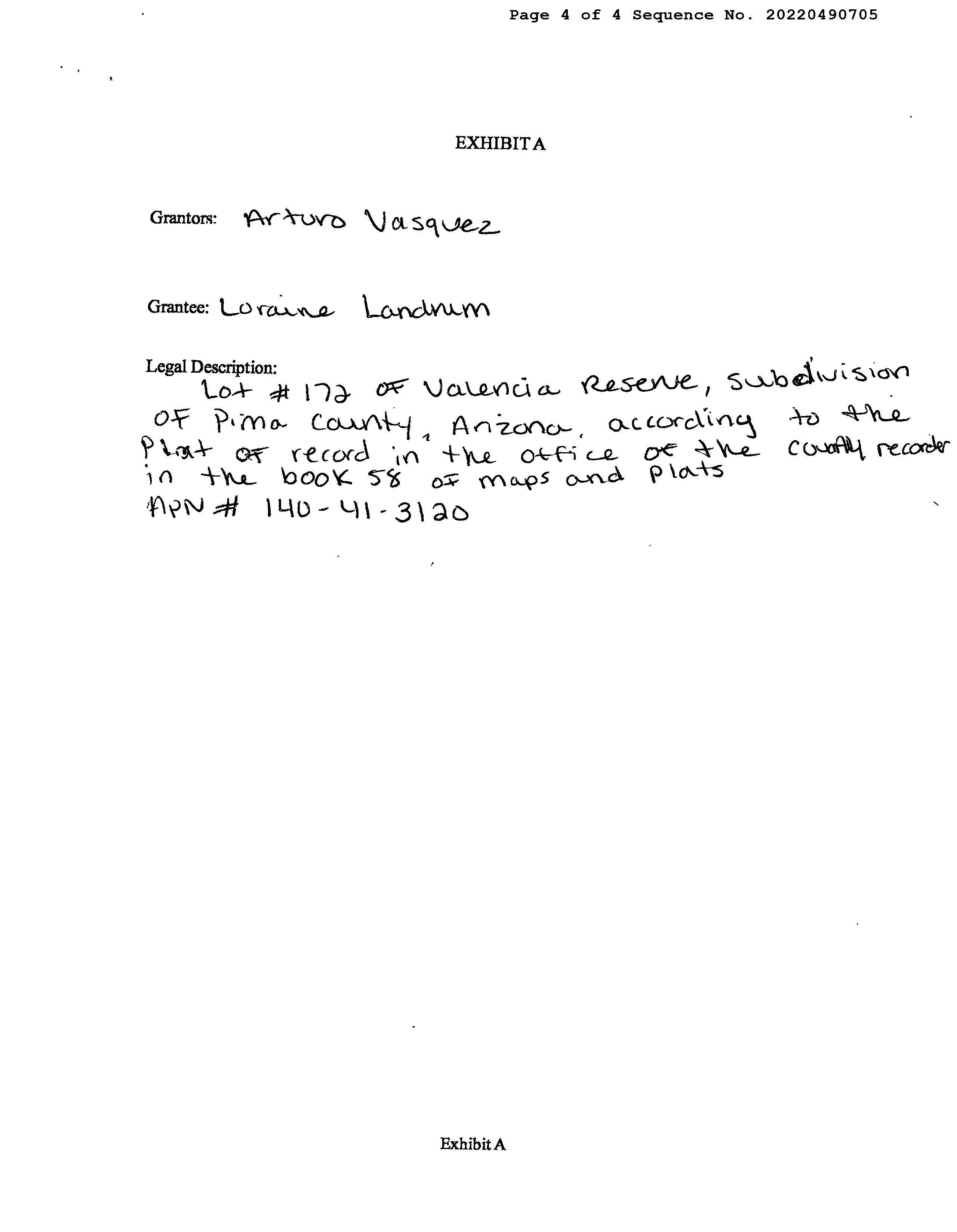 OWNER: LANDRUM LORAINE & VASQUEZ A