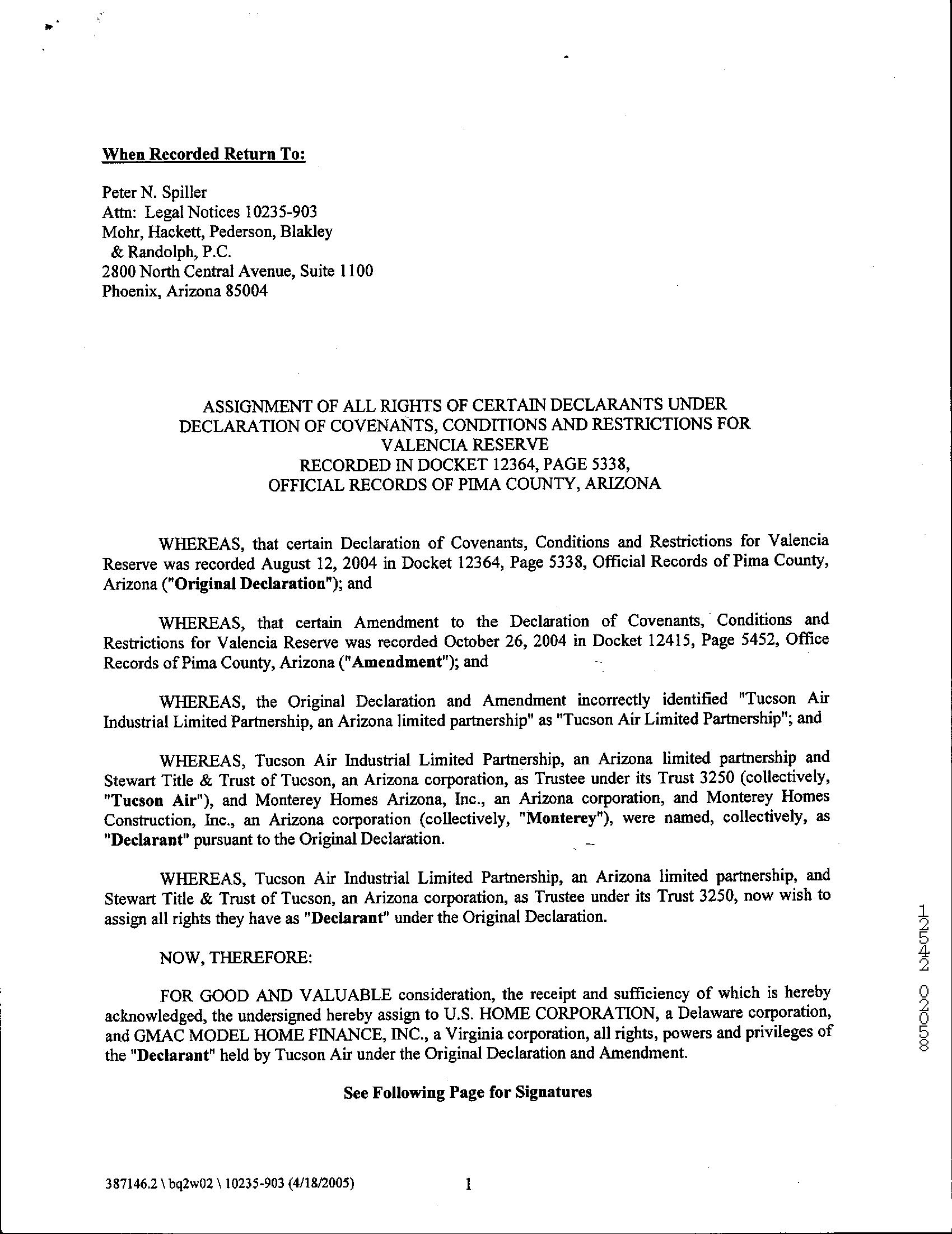 LEGAL: VALENCIA RESERVE LOT 172