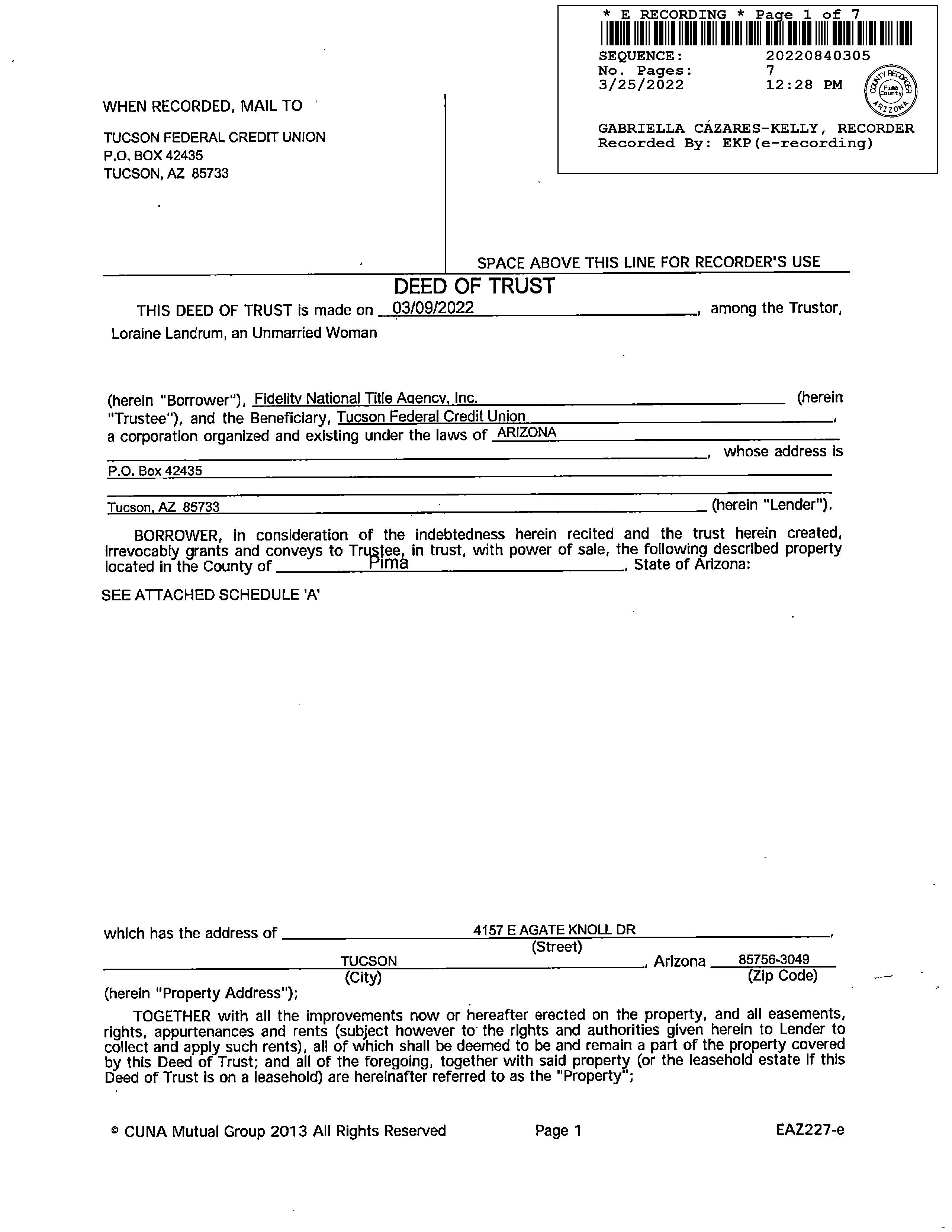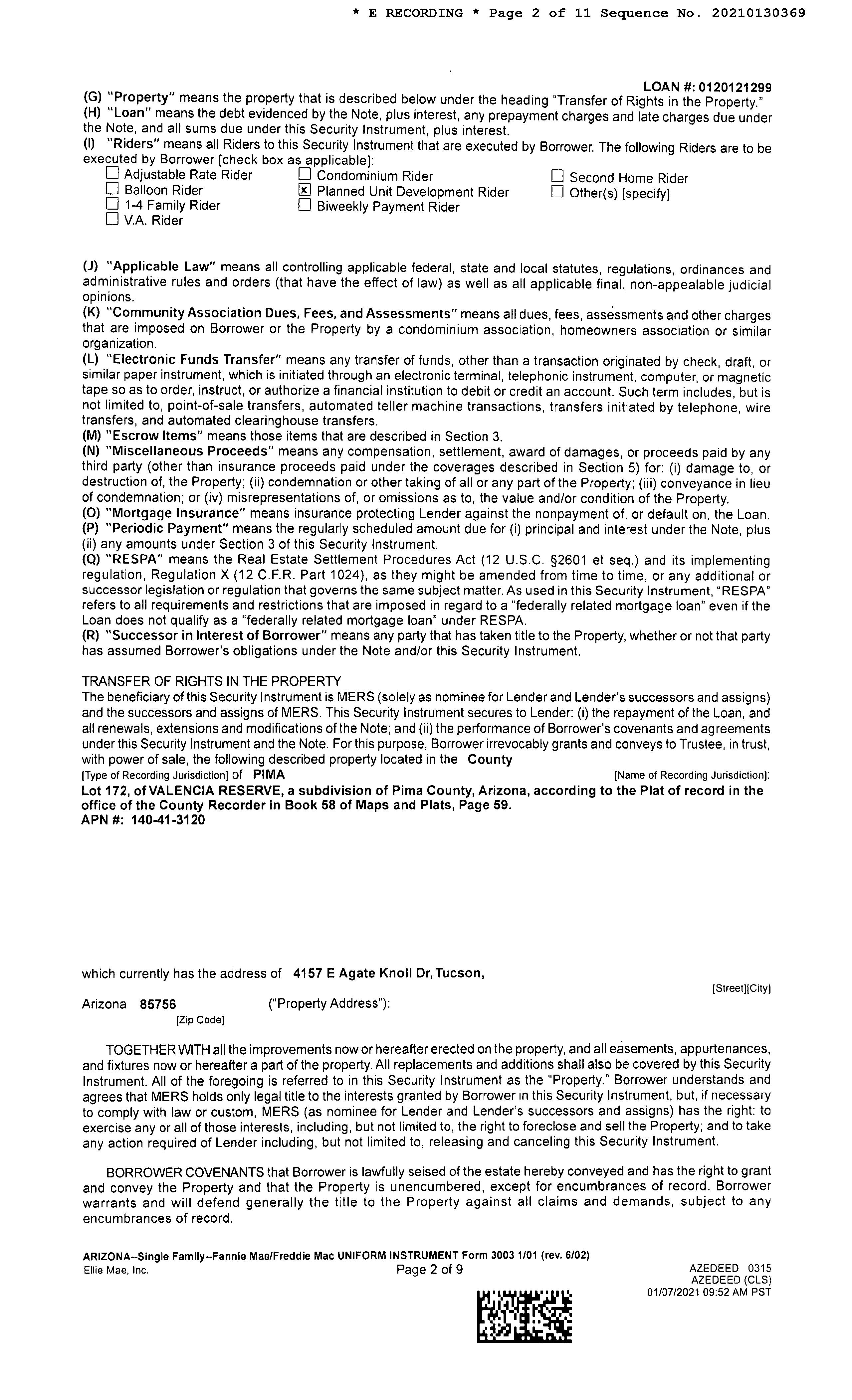 SITUS: 4157 E AGATE KNOLL DR TUC
