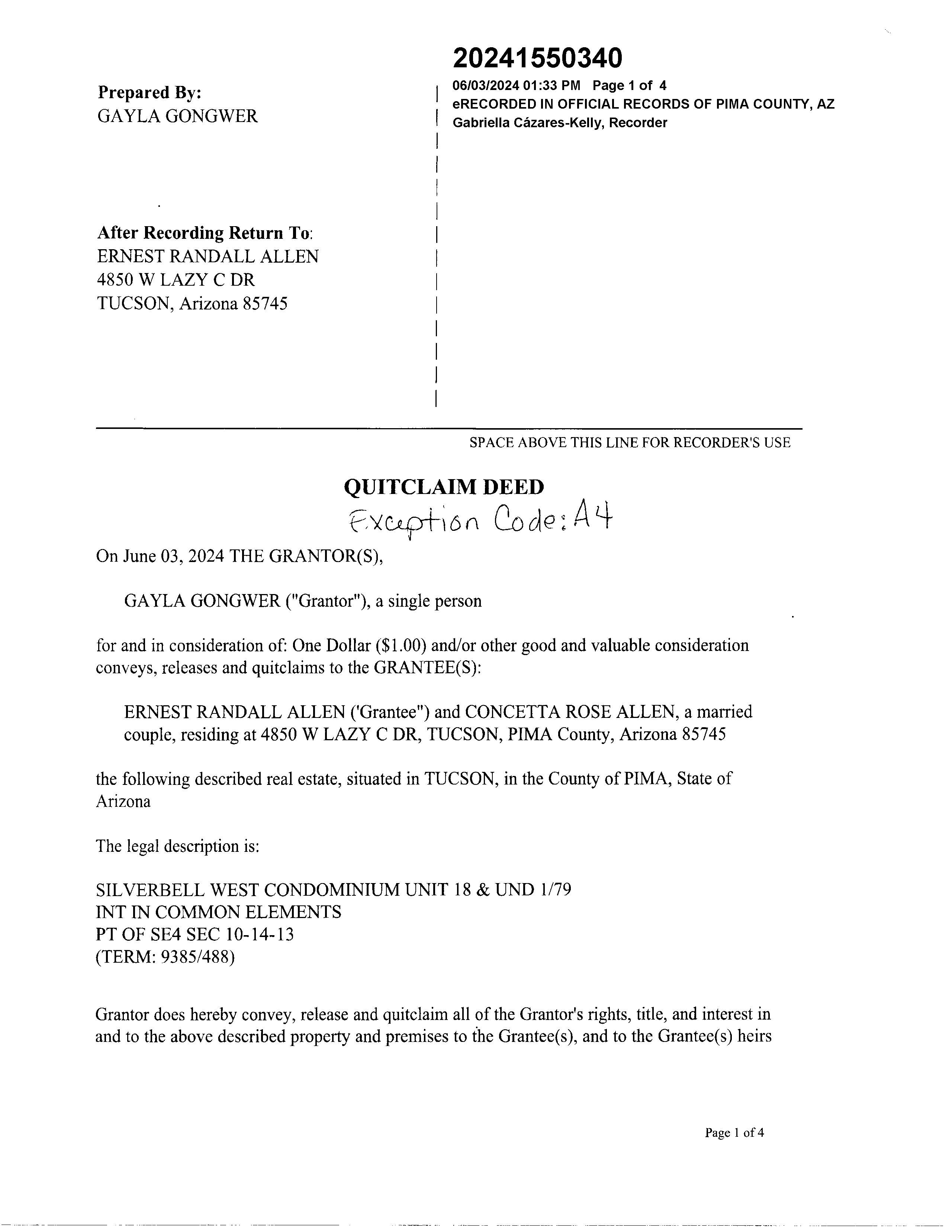 Mailing Address : 4850 W Lazy C Dr, Tucson AZ 85745-8868 R036