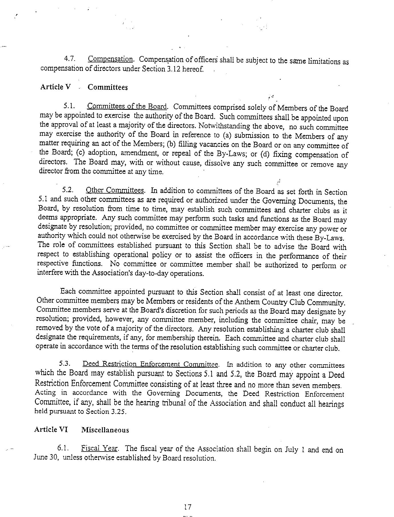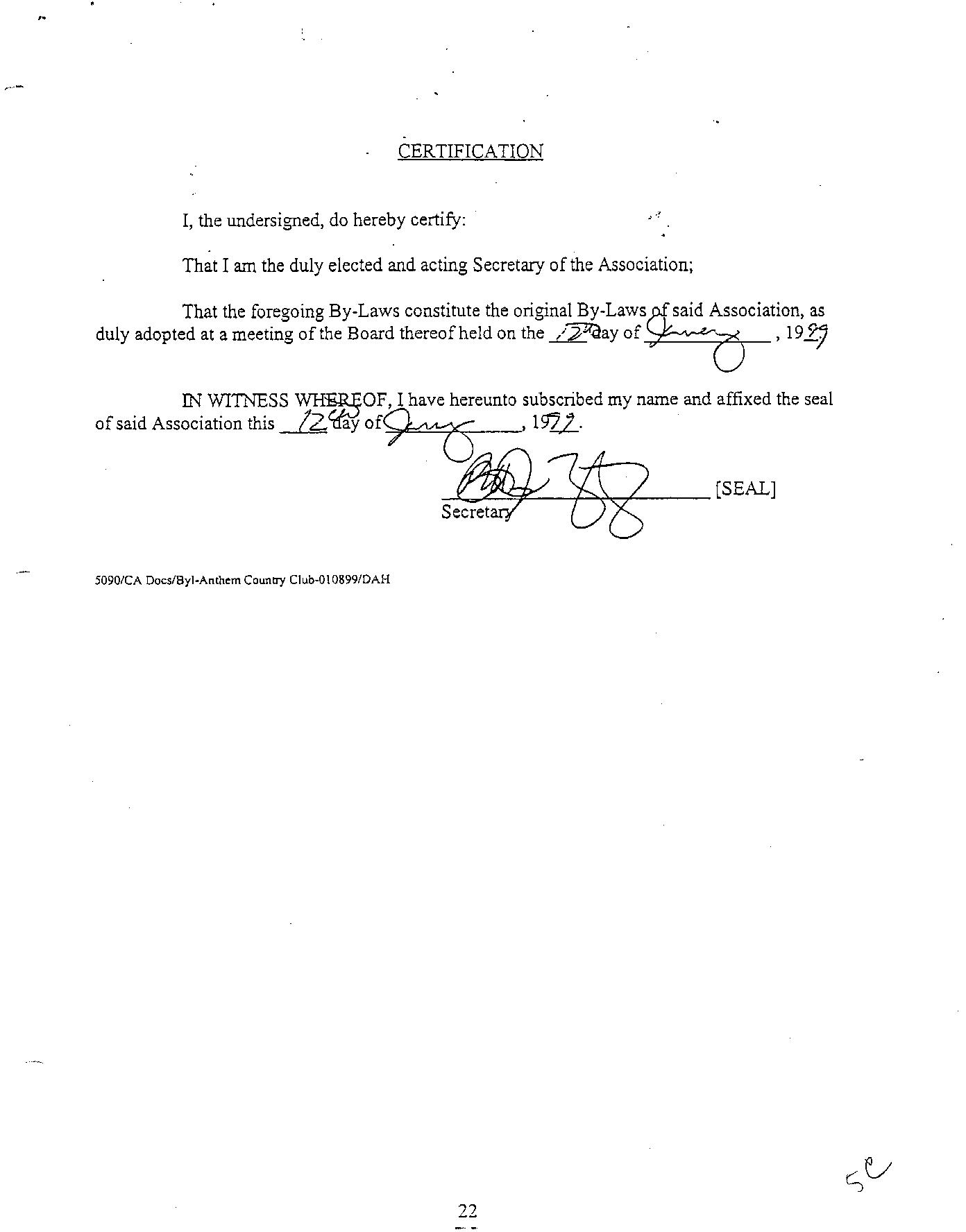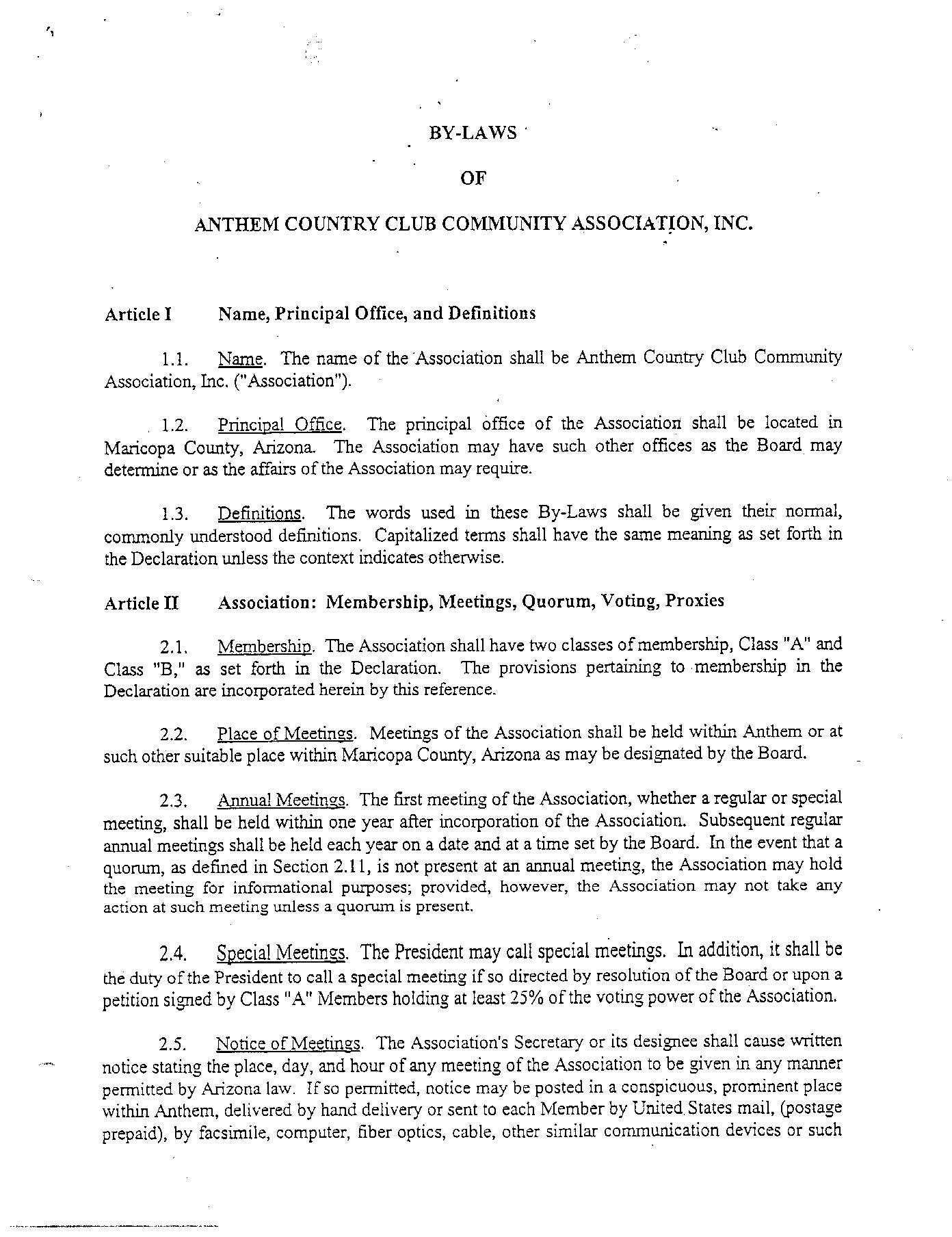 "By-Laws": The By-Laws of Anthem Country Club Community Association, Inc., as they may be amended.