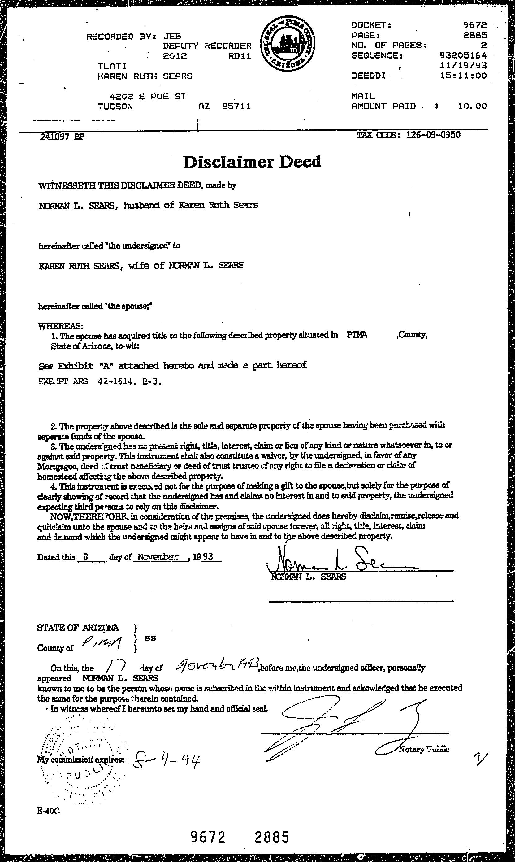 Recording/Sale Date : 11/19/1993 / 11/00/1993