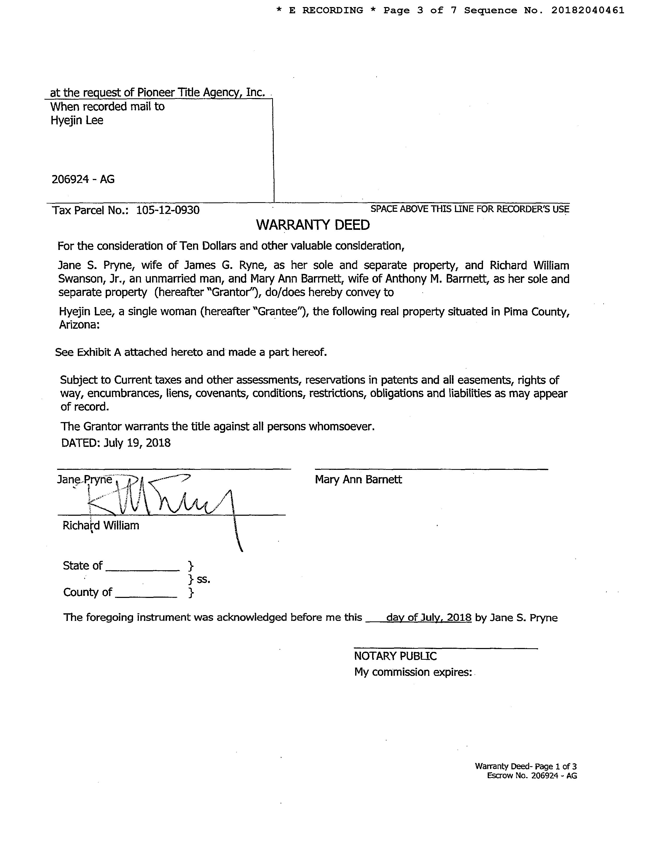 OWNER: LEE HYEJIN AFFIDAVIT 2018 2040461 07/23/2018