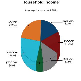 Household Population Population by Age Count: 4,030 0 - 11 Estimate Current Year: 4,290 12 - 17 Estimate in 5 Years: 5,507 18 - 24 5.81% Growth Last 5 Years: -7.69% 25 - 64 63.82% Growth Last 10 Years: -114.34% 65 - 74 9.18% 75+ Household Size Household Income Current Year: 2,175 0 - $25,000 22.57% Average Current Year: 1.84 $25,000 - $35,000 17.15% Estimate in 5 Years: 4,605 $35,000 - $50,000 16.74% Growth Last 5 Years: 10.44% $50,000 - $75,000 13.66% Growth Last 10 Years: -15.68% $75,000 - $100,000 5.61% Male Population: 46.4% Above $100,000 24.28% Female Population: 53.6% Average Household Income: $44,381 Married People: 41.29% Unmarried People: 58.71% Housing Median Mortgage Payments Home Values Under $300: 8.76% Below $100,000: 23.03% $300 - $799: 32.68% $100,000 - $150,000: 15.65% $800 - $1,999: 53.15% $150,000 - $200,000: 21.06% Over $2,000: 5.41% $200,000 - $300,000: 38.19% Median Home Value: $178,100 $300,000 - $500,000: 2.07% Unit Occupied Owner: 46.71% Above $500,000: 0% Median Mortgage: $912