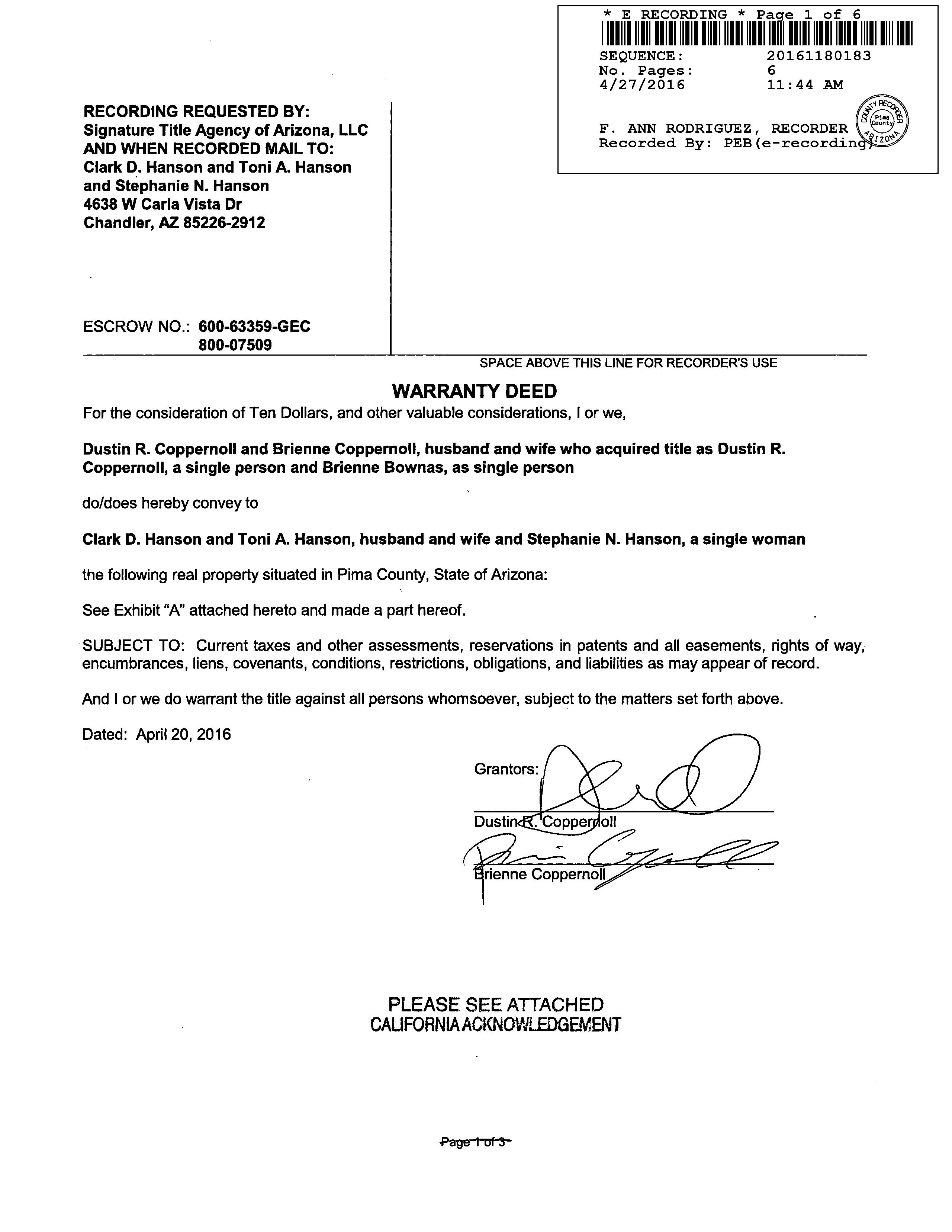 / Alternate APN: 110-05-2140 / Deed Type: Warranty Deed