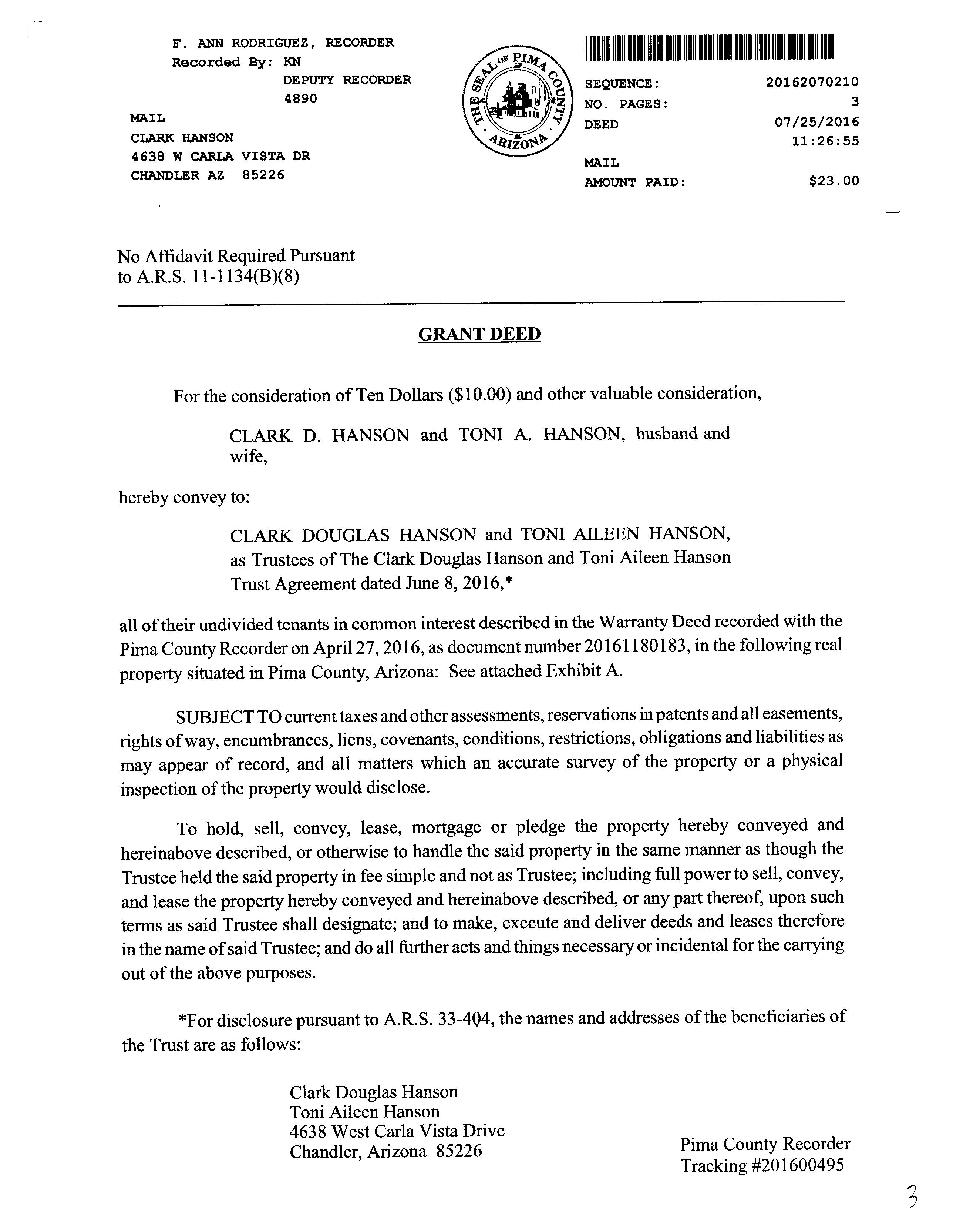 Owner Name: Hanson Clark D & Toni A /Hanson Stephanie N