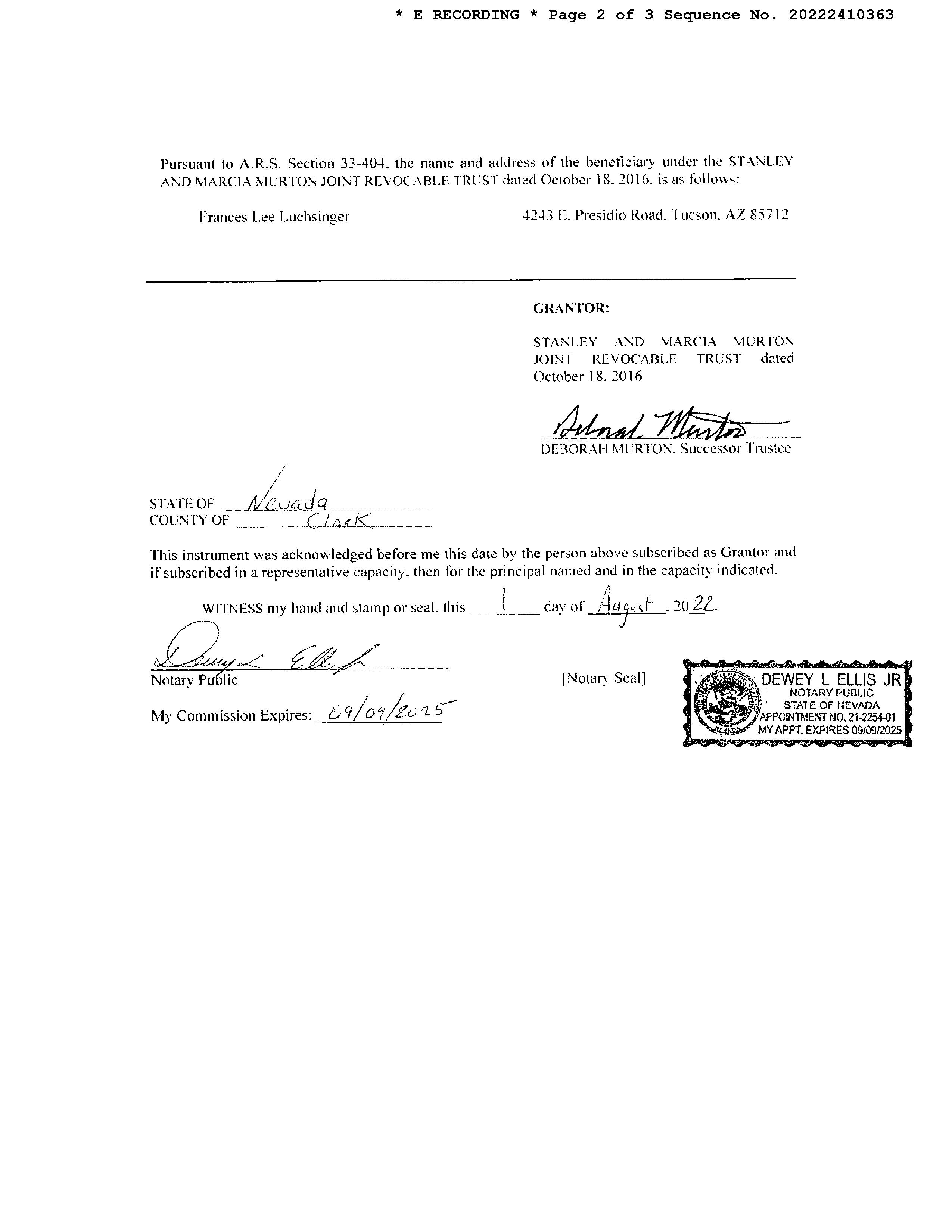 Mailing Address : 4243 E Presidio Rd, Tucson AZ 85712-1044 C019