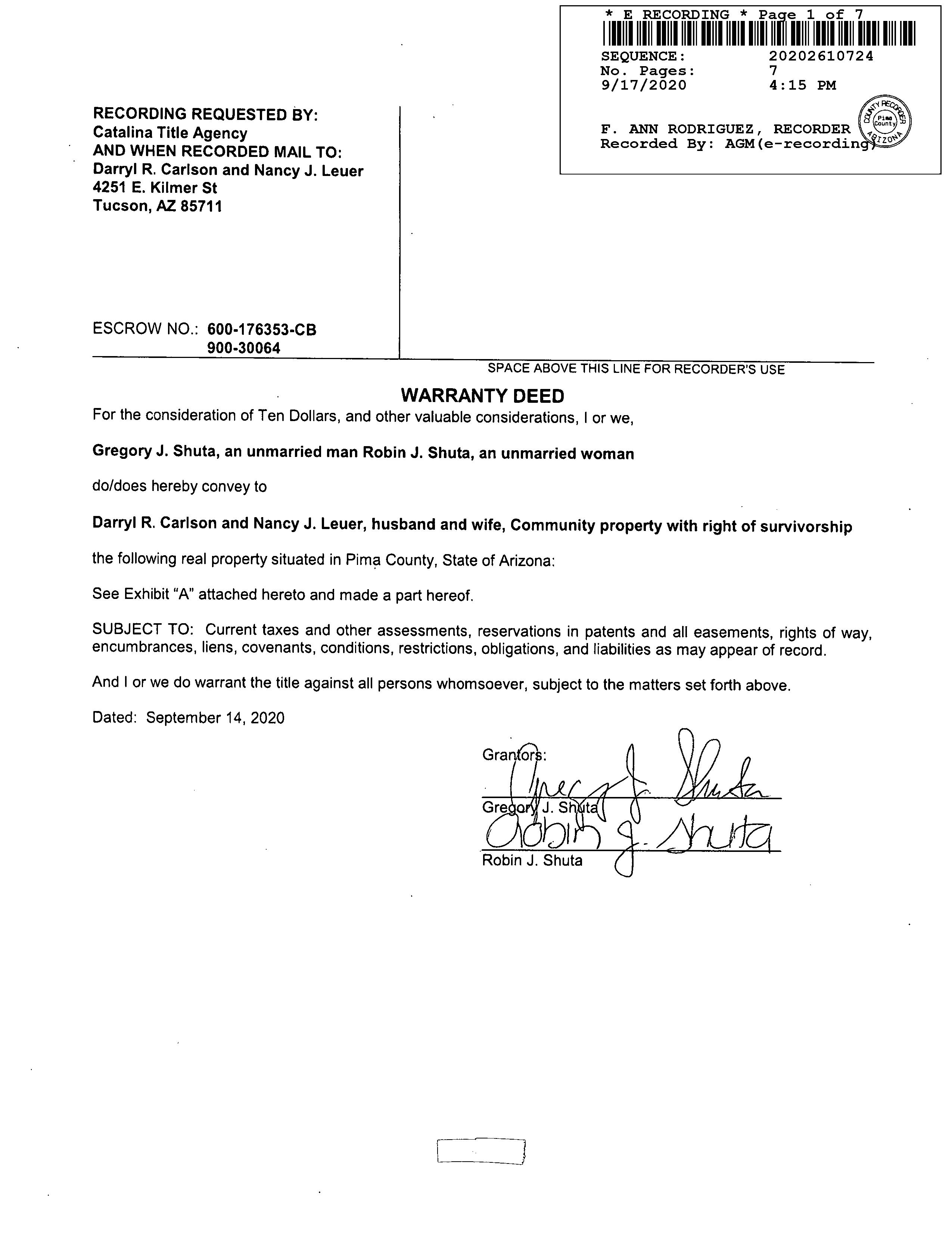 Owner Name : Carlson Darryl R / Leuer Nancy J