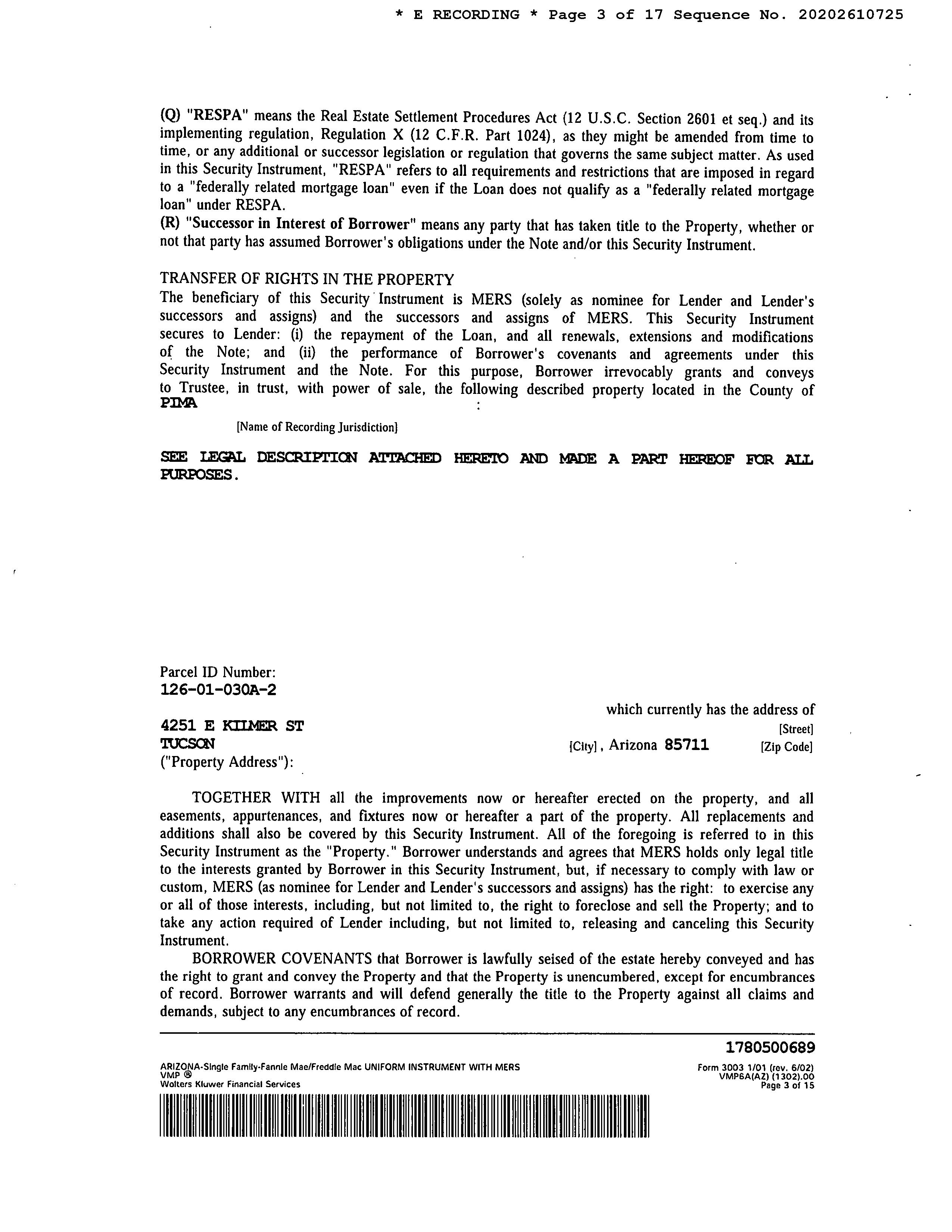 Mailing Address : 4251 E Kilmer St, Tucson AZ 85711-2825 C003