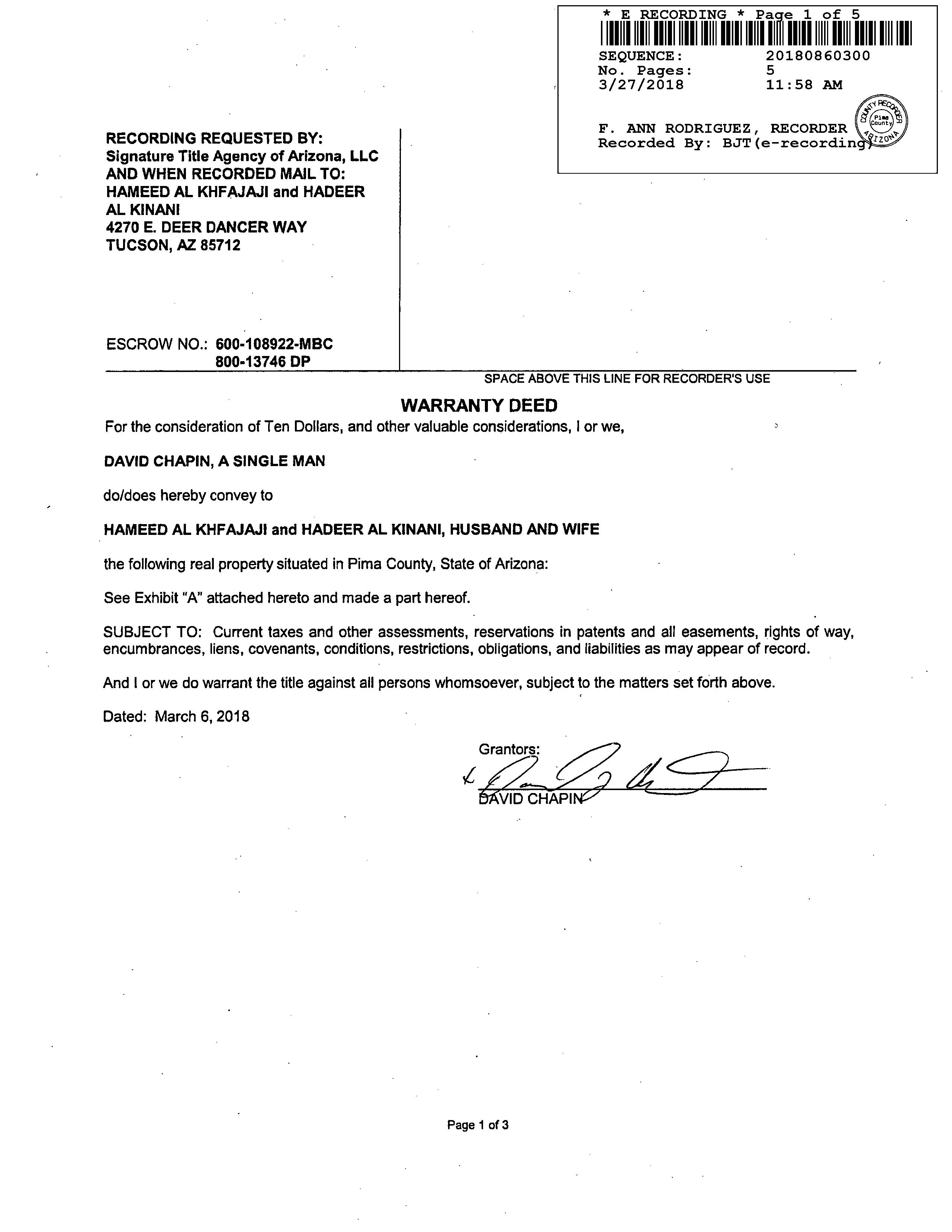 Subject Property : 4270 E Deer Dancer Way Tucson AZ 85712