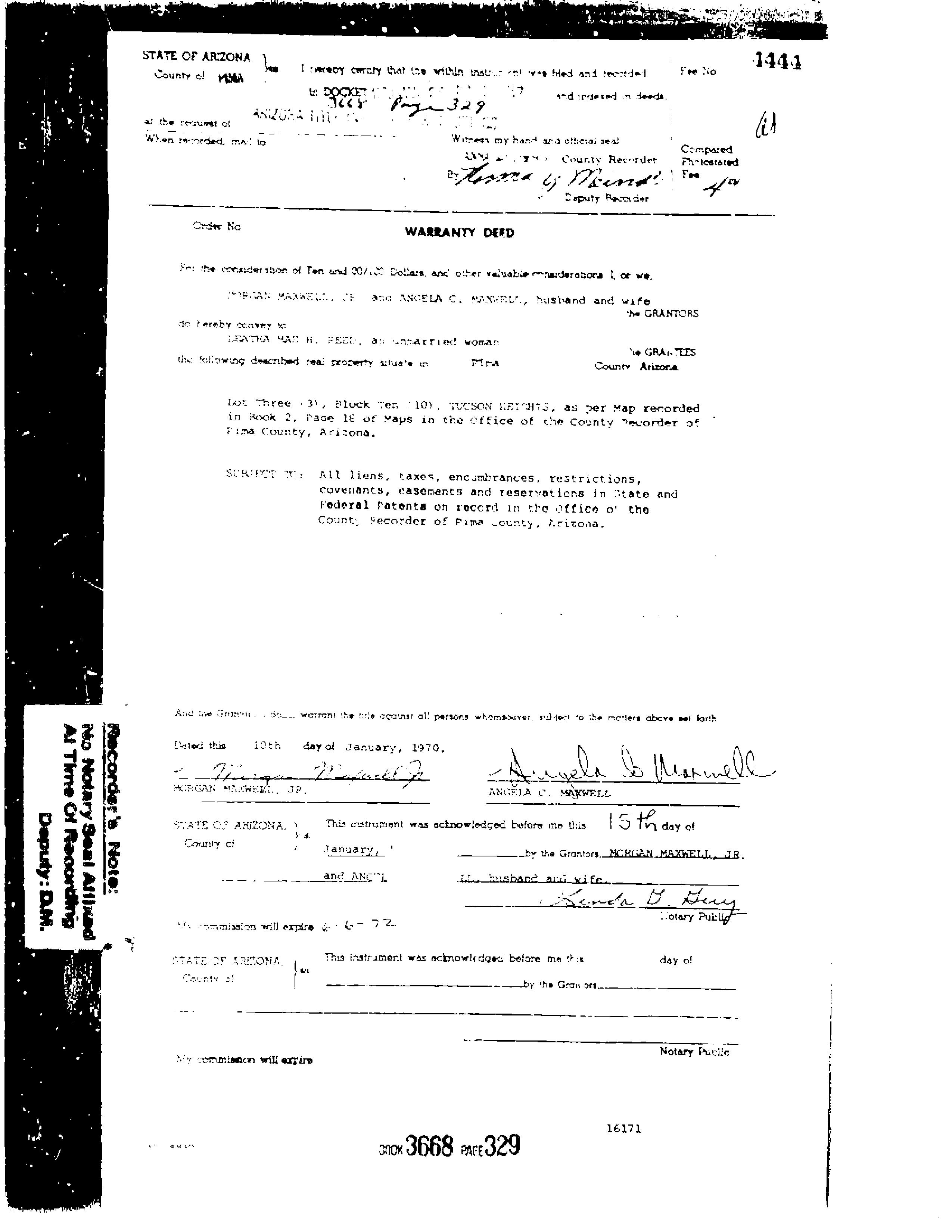 Legal Description : Tucson Heights Amended Lot 3 Blk 10