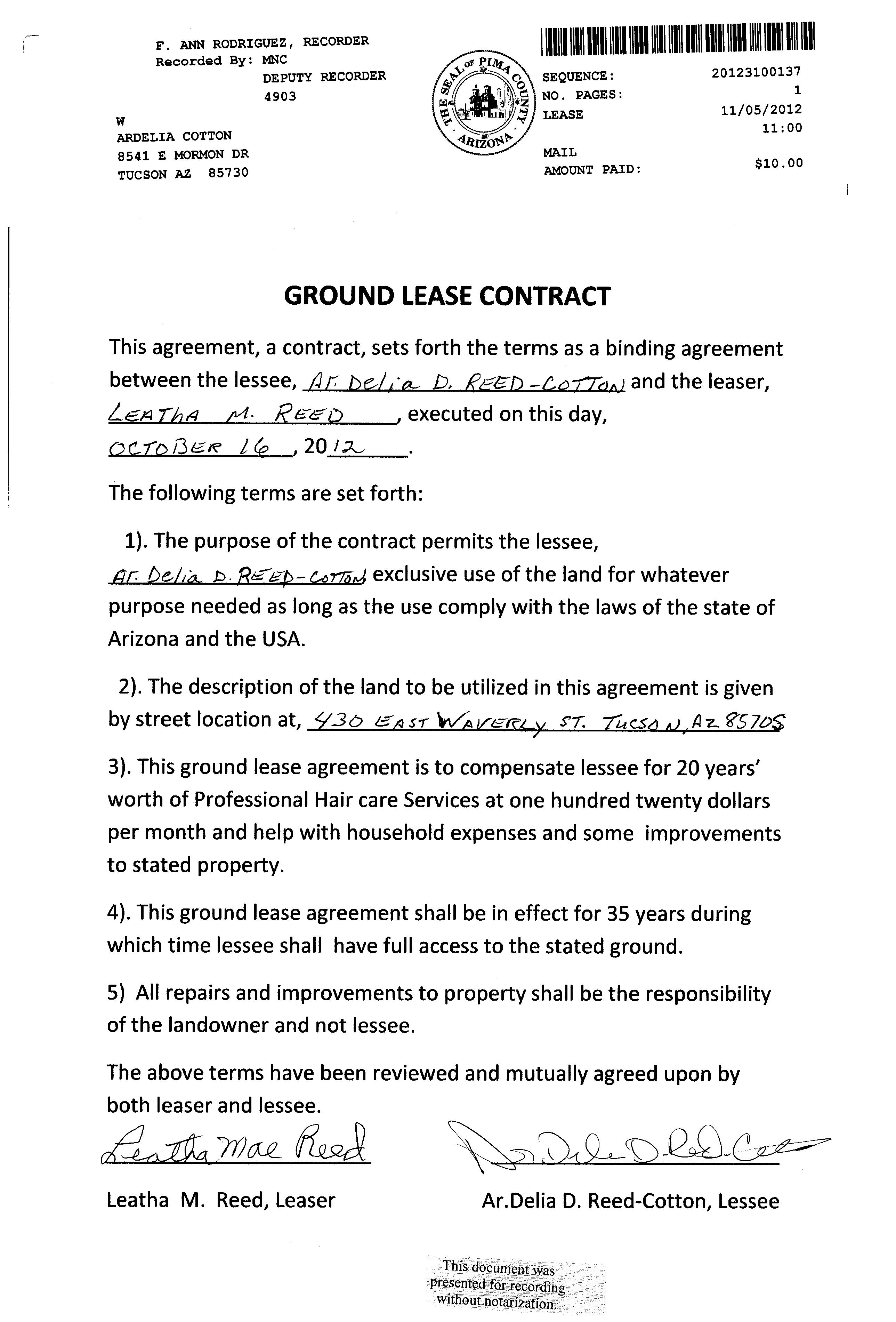 Mailing Address : 430 E Waverly St, Tucson AZ 85705-8906 C014